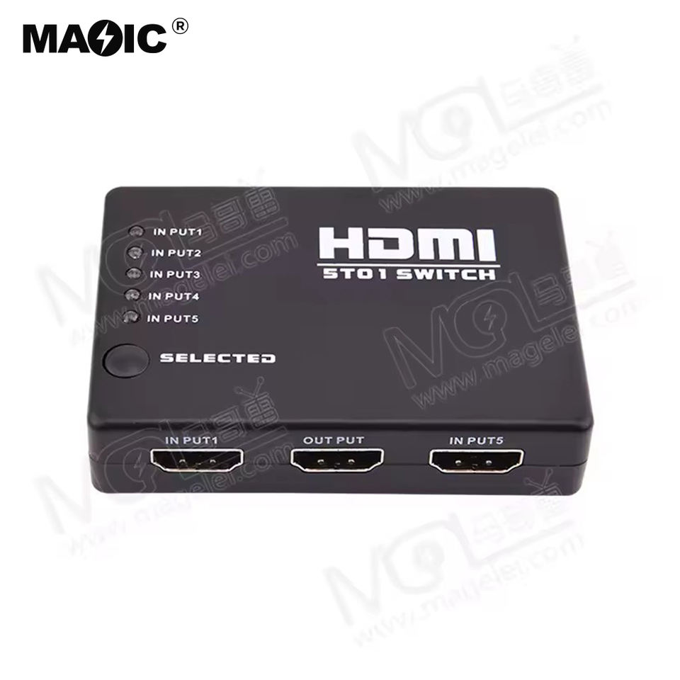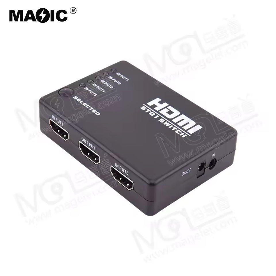 Factory 5x1 MINI HDMI Splitter 5 Port Hub Box Auto Switch 5 Input 1 Output hdmi Switcher 3D 1080p HD With Remote Control