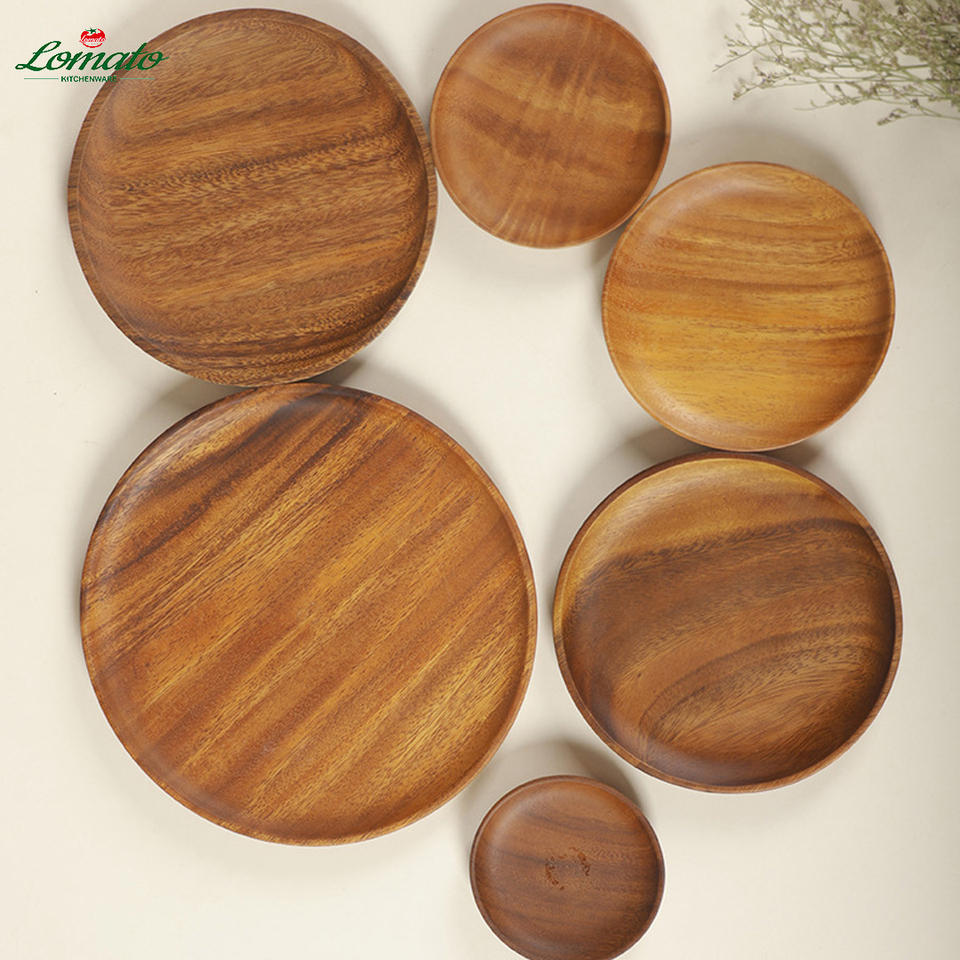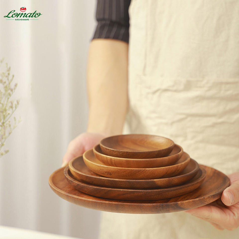 จาน/ถาดอาหารไม้โอ๊ค ไม้กระถิน ไม้สัก ขนาดใหญ่ เล็ก สำหรับร้านอาหาร แอฟริกัน รักษ์โลก ปลอดภัยสำหรับอาหาร ทนทาน สไตล์นอร์ดิก