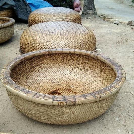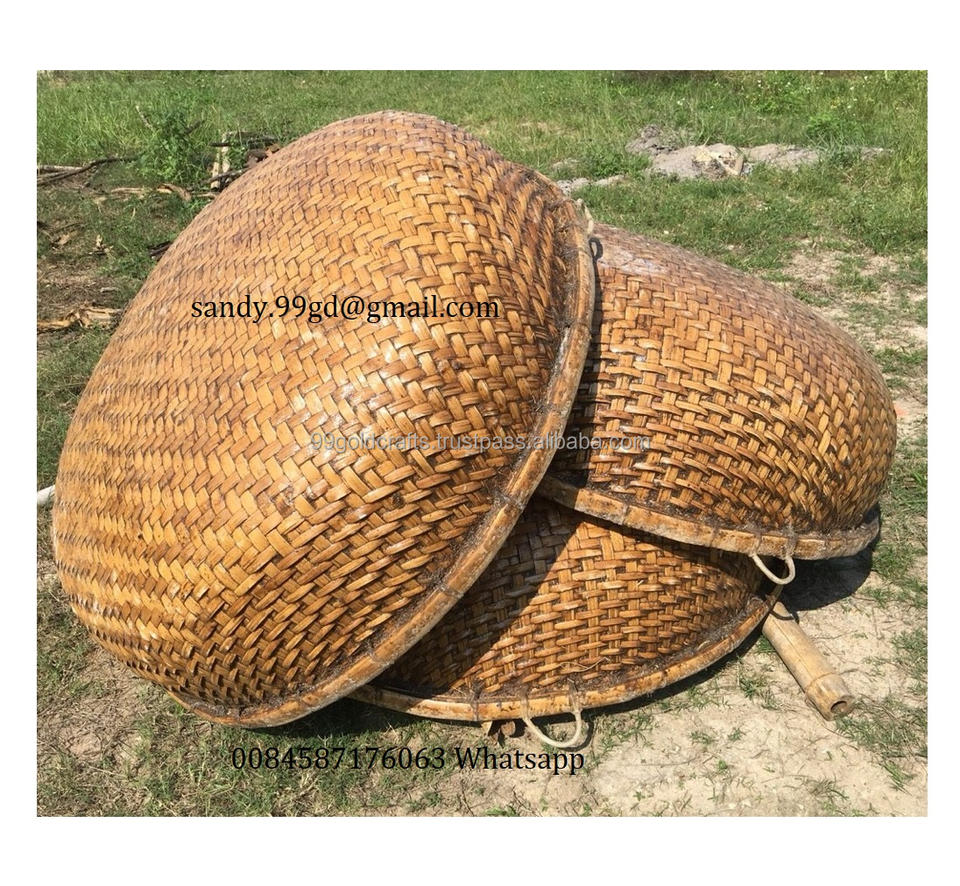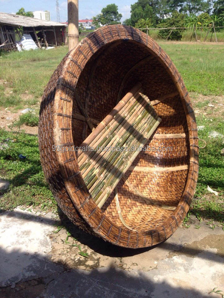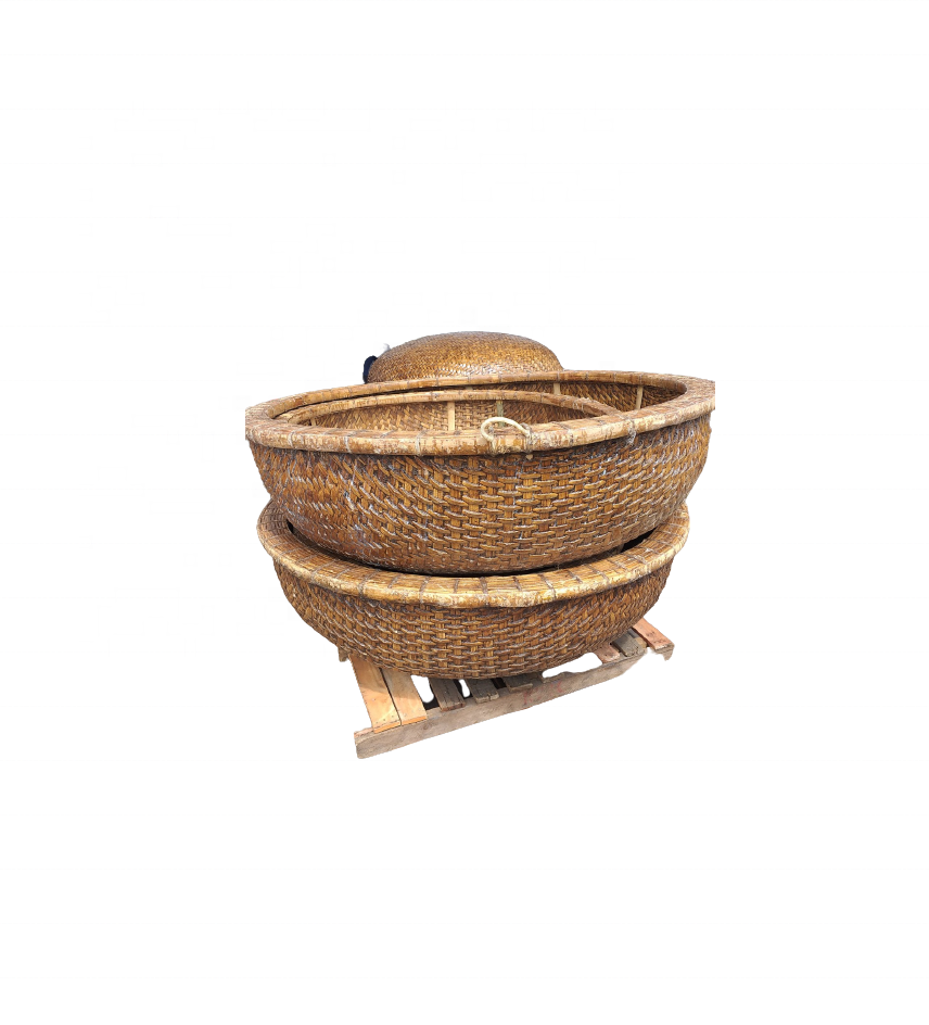 ตะกร้าไม้ไผ่ทรงวงกลมแบบเอเชียเรือไม้ไผ่พร้อมเรือพายสำหรับงานฝีมือไม้ไผ่