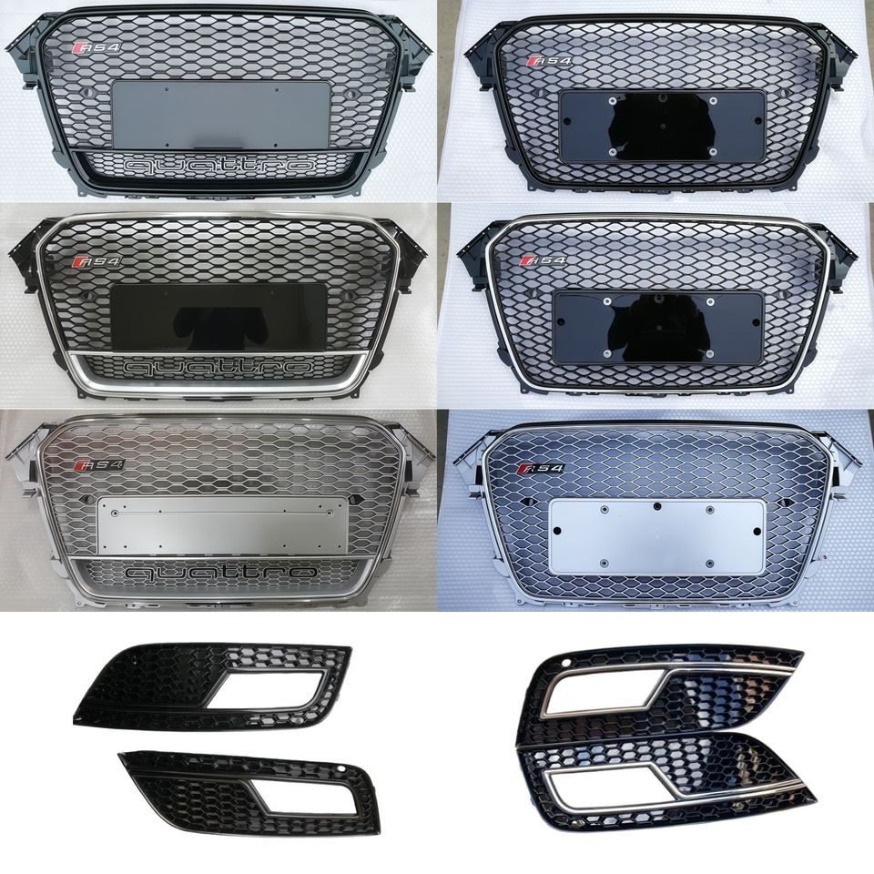 โรงงานอัตโนมัติ RS4 สีดําหรือสีเงินกันชนหน้ากระจังหน้ารังผึ้ง Quattro สําหรับ Audi A4 B8.5 2013-2016