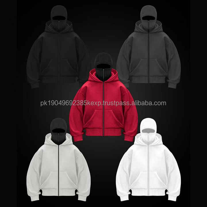 เสื้อฮู้ดบาลาคลาวาแบบซิป สตรีทแวร์ ผ้าสองชั้น สกรีนโลโก้ได้ เสื้อฮู้ดซิปแบบบาลาคลาวา