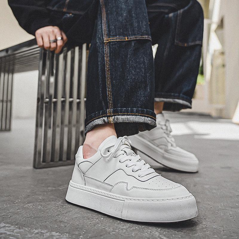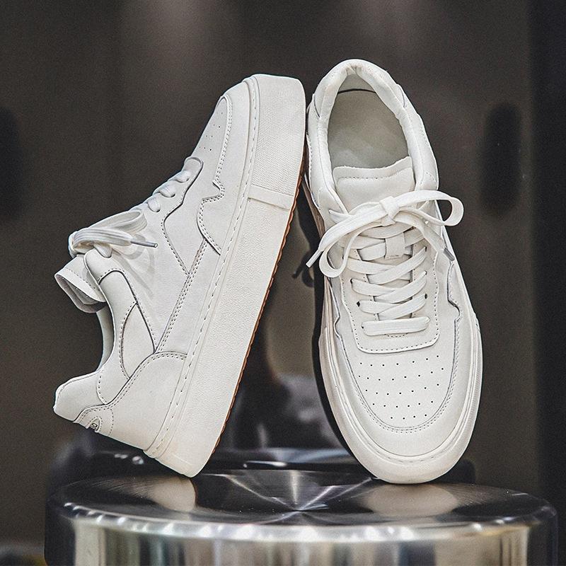 รองเท้าวิ่งพื้นหนาสำหรับผู้ชาย ขายดีเป็นแพ็คๆ จากโรงงาน รองเท้าลำลองพื้นเรียบ น้ำหนักเบา ระบายอากาศได้ดี หนังแท้