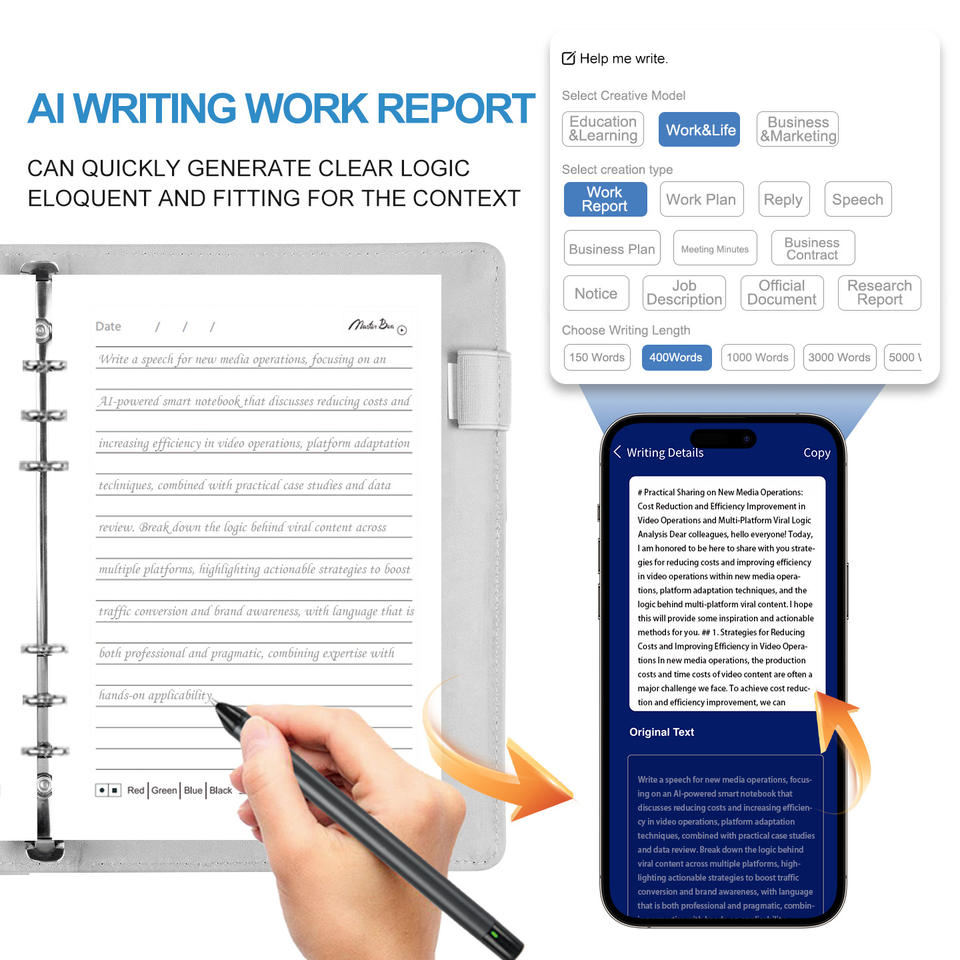 สมุดโน้ต AI พร้อมปากกาซิงค์อัจฉริยะดิจิทัล