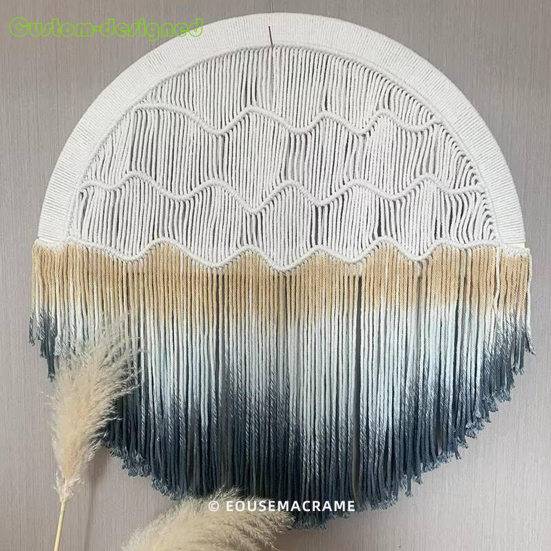 ภาพจิตรกรรมฝาผนังแบบโบโฮแรมแบบแขวนขนาดใหญ่ทำด้วยมือสีฟ้าสำหรับตกแต่งบ้านการออกแบบสำหรับตกแต่งโรงแรมร้านอาหารแบบทำมือ