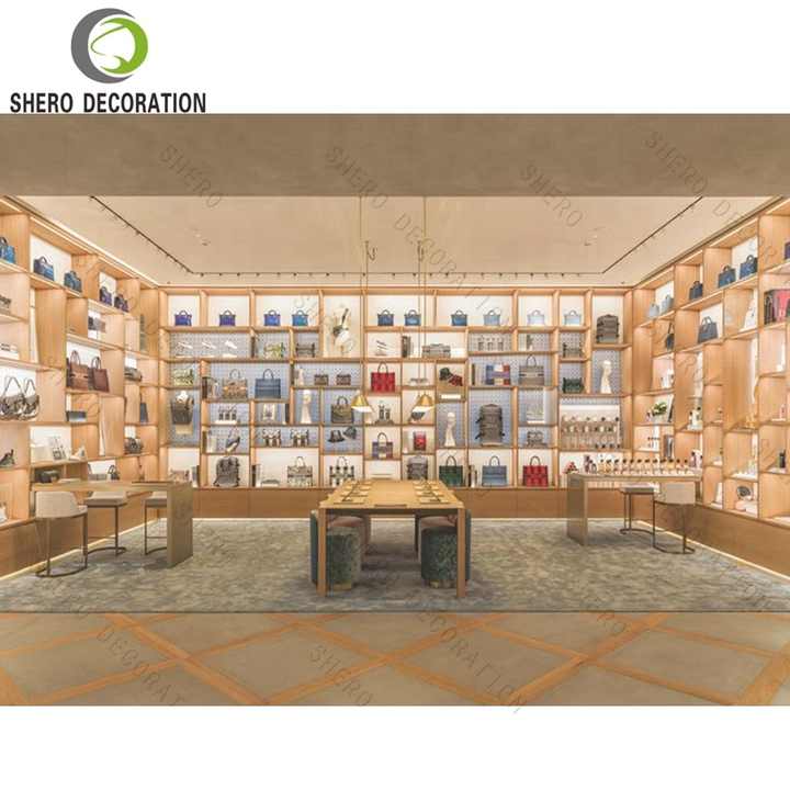 ตู้โชว์สินค้าร้านค้าแฟชั่น ตู้โชว์รองเท้าคุณภาพสูง ชั้นวางโชว์กระเป๋าพร้อมไฟ LED ตู้ติดผนังสำหรับกระเป๋า
