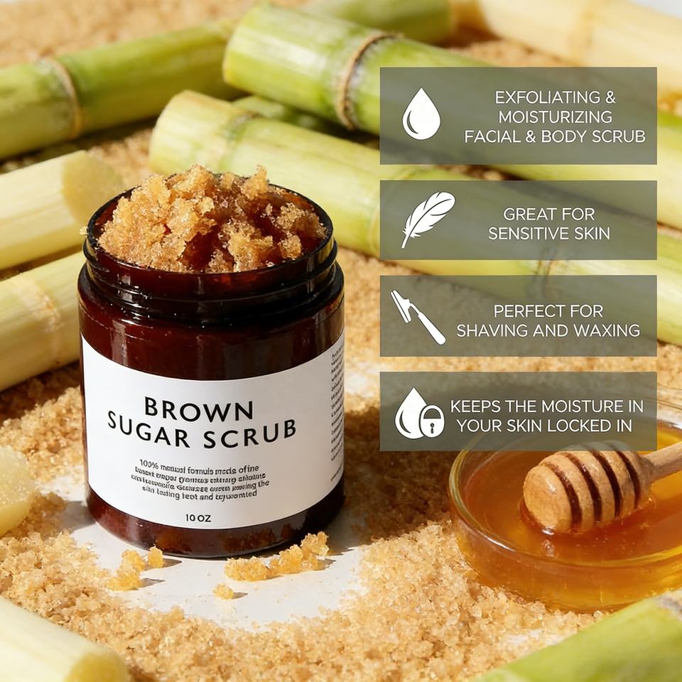 สครับขัดผิวสูตรน้ำตาลน้ำตาลแดง - สครับบำรุงผิวกาย - ลดรอยสิวและรอยแตกลาย - ผลิตภัณฑ์ขัดผิวจากธรรมชาติที่อ่อนโยน