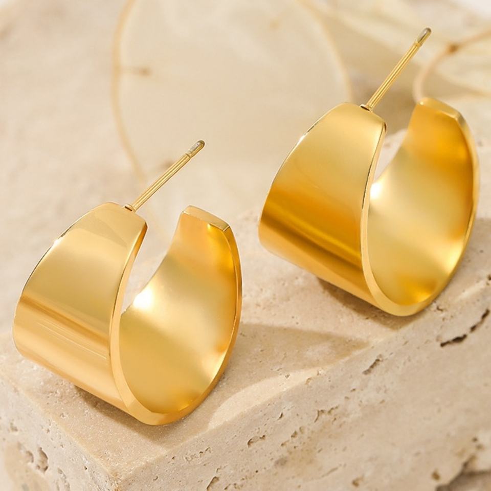 ต่างหูเรขาคณิตสแตนเลสชุบทอง 18K จำนวนมากจากโรงงาน เครื่องประดับกันน้ำ