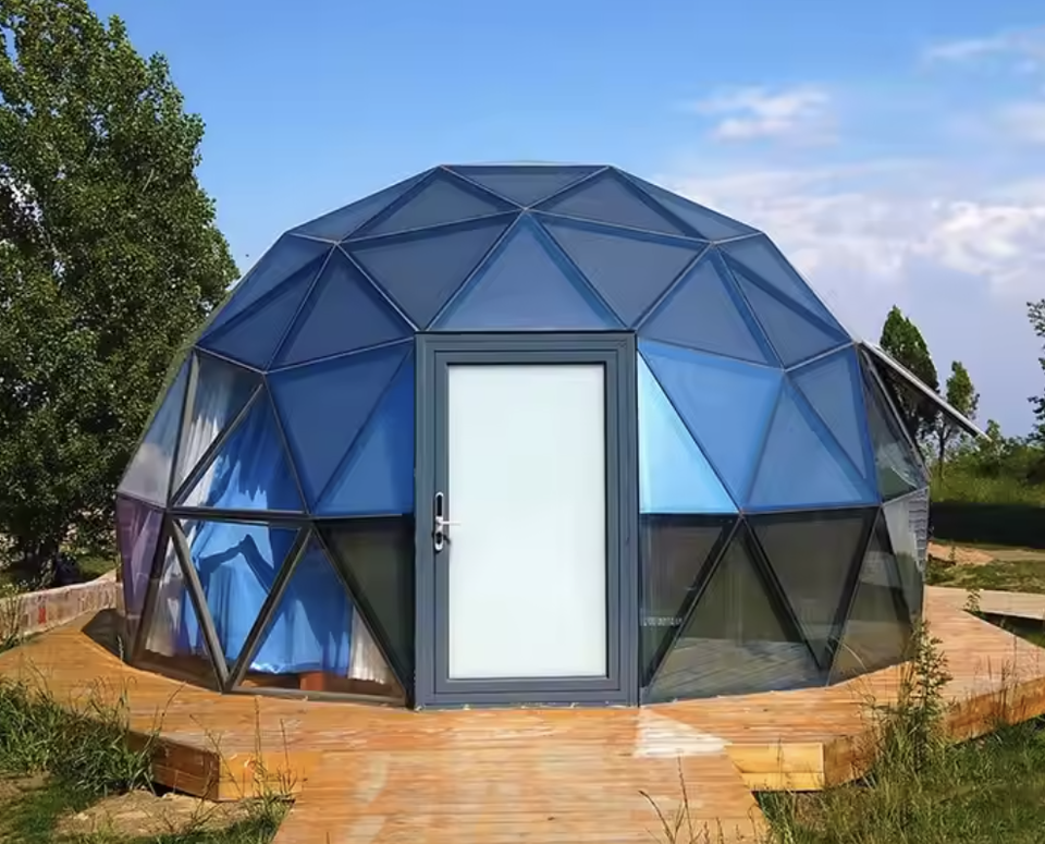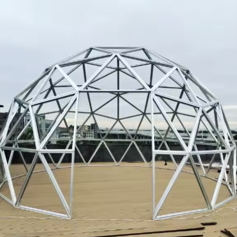 เต็นท์โดมแก้วแบบโดมครึ่งลูกสำเร็จรูปทำจากแก้ว Geodesic ชุดโดมทรงโดมขนาดใหญ่สำหรับตั้งแคมป์