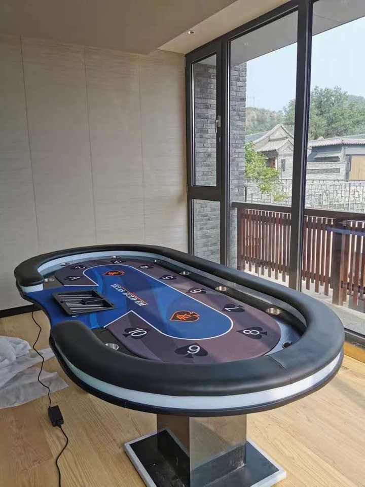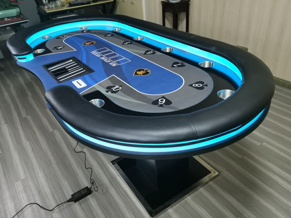 โต๊ะโป๊กเกอร์คาสิโนพร้อมไฟ LED ช่องเสียบ USB สำหรับชาร์จ โต๊ะเล่นเกม โต๊ะโป๊กเกอร์แบบกำหนดเอง
