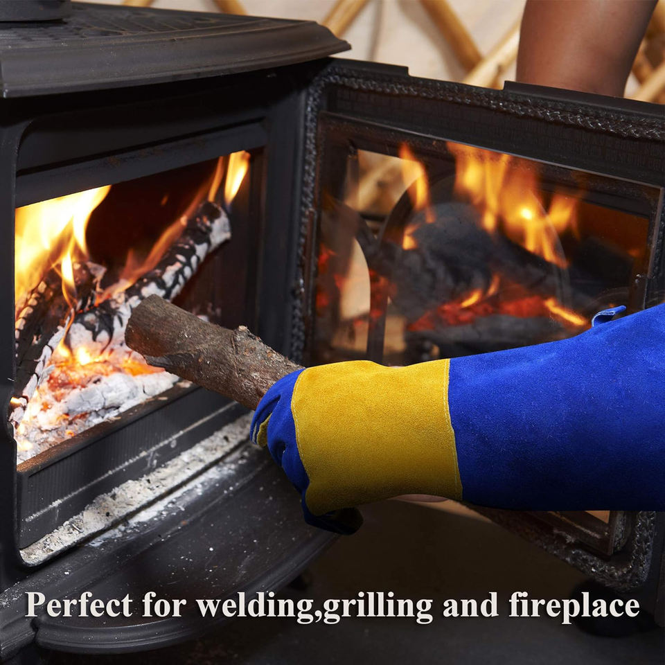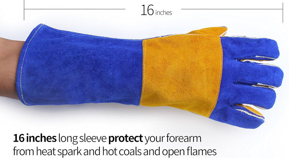 ถุงมือเชื่อมโลหะราคาโรงงานถูก ถุงมือหนังวัวเสริมแรงสำหรับช่างเชื่อม ป้องกันมือ ถุงมือเชื่อมแบบ TIG
