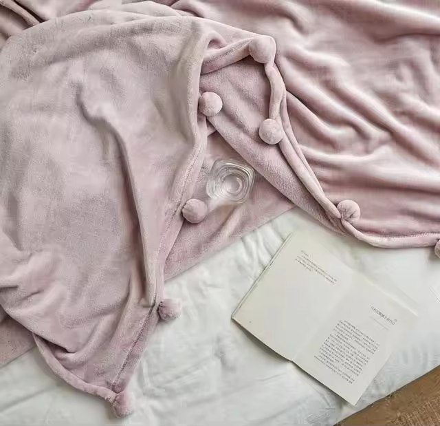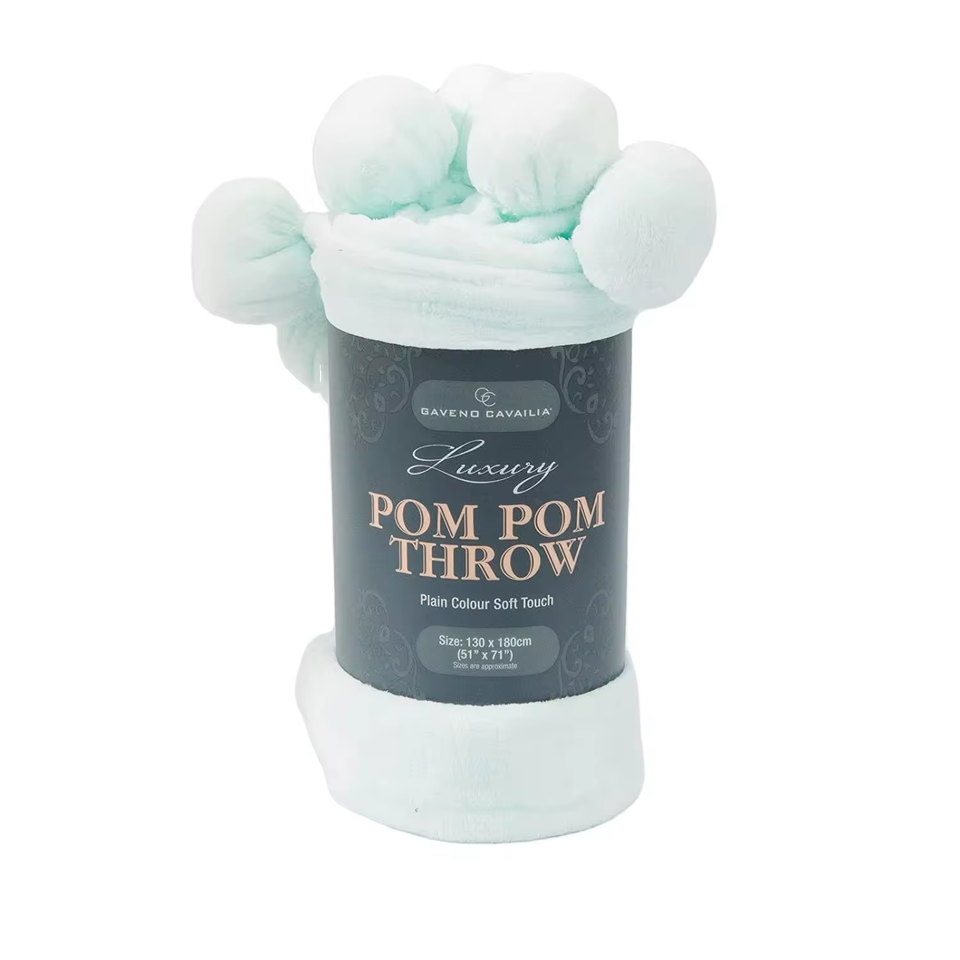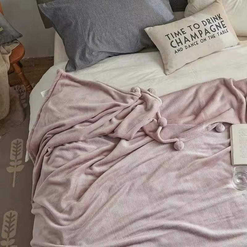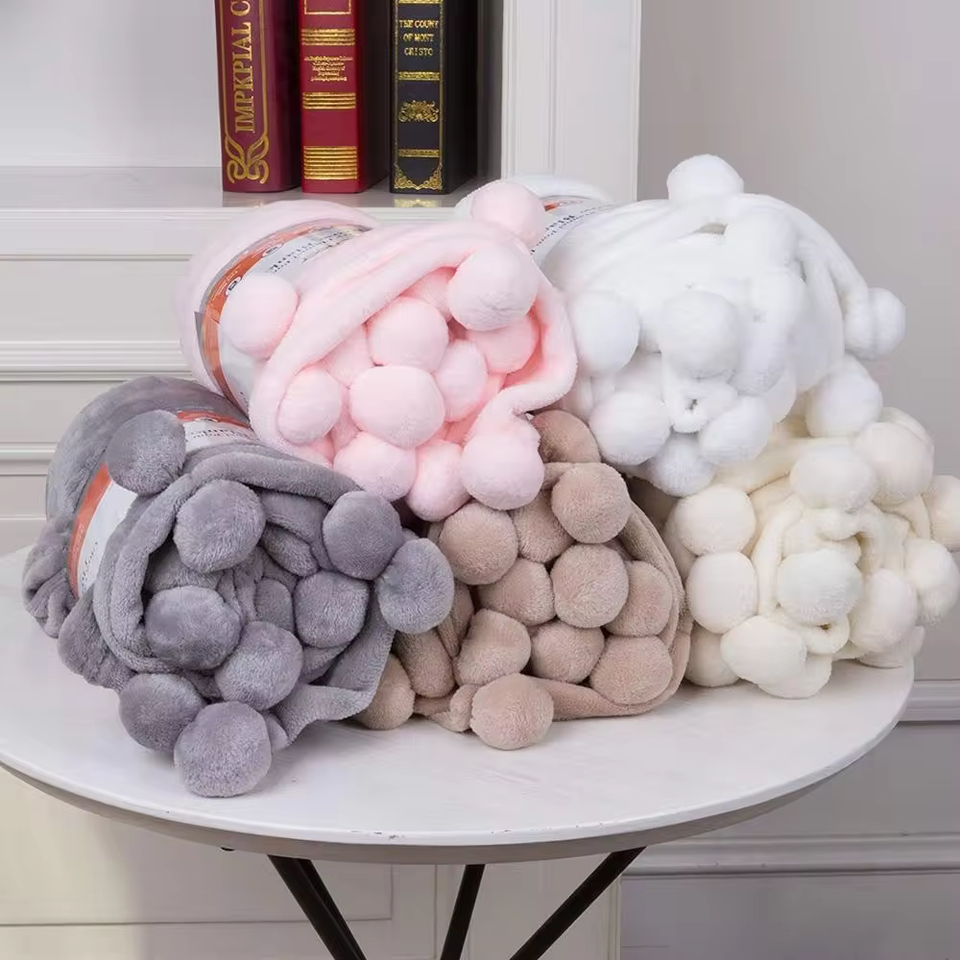 โรงงานจีนบ้านนุ่มสิ่งทูตปอมปอมผ้าห่มพรีเมี่ยมFuzzy Flannelเตียงโซฟาโยนผ้าห่มที่กําหนดเองปอมปอมผ้าห่มขนแกะ