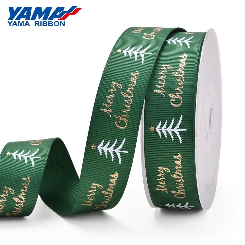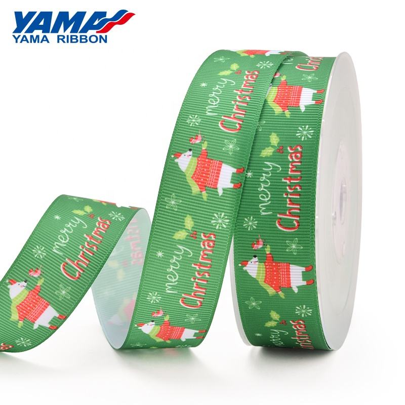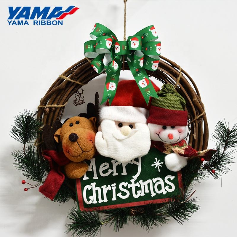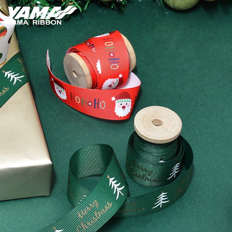 ริบบิ้นม้วนสำหรับตุ๊กตาหิมะขนาด25มม. ทำจากต้นคริสต์มาสพิมพ์ลายเป็นมิตรกับสิ่งแวดล้อมดีไซน์คริสต์มาส