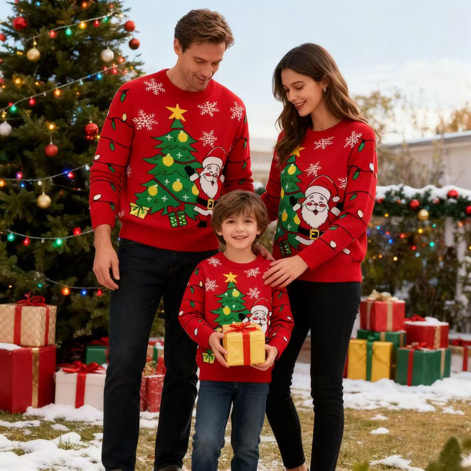 เสื้อกันหนาวคริสต์มาสสำหรับผู้หญิง ผู้ชาย เด็ก น่ารัก แบบครอบครัวเข้าชุดกัน เสื้อไหมพรมถักสำหรับงานปาร์ตี้วันหยุด