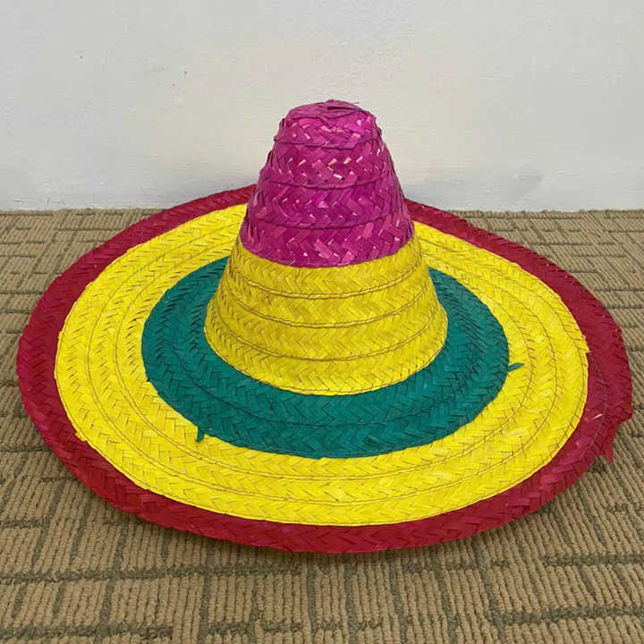 หมวกฟางปีกกว้างหลากสีสันสำหรับงานปาร์ตี้/หมวกฟางปีกกว้างสไตล์มาเรียชิพร้อมโลโก้สั่งทำ สำหรับงานปาร์ตี้ฤดูร้อน ใช้ได้ทุกวัน เหมาะสำหรับทุกเพศ เป็นของขวัญ