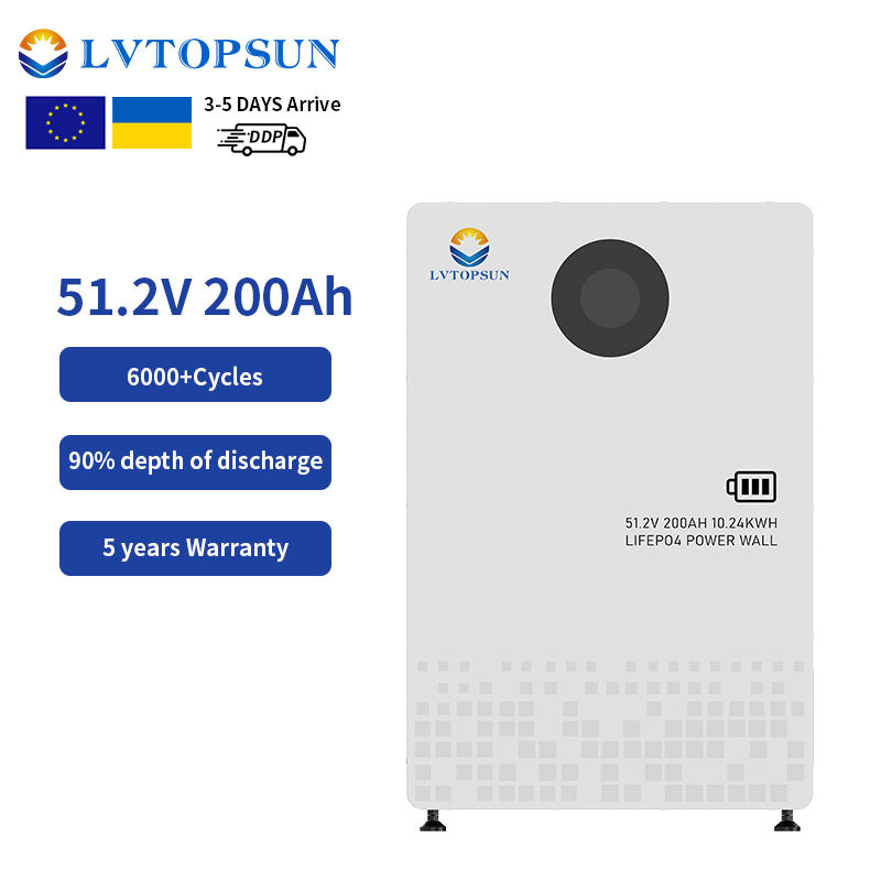 แบตเตอรี่เก็บพลังงานแสงอาทิตย์ lvtopsun 51.2V แพ็คสำรอง10KWH 200AH สำหรับบ้านที่อยู่อาศัย