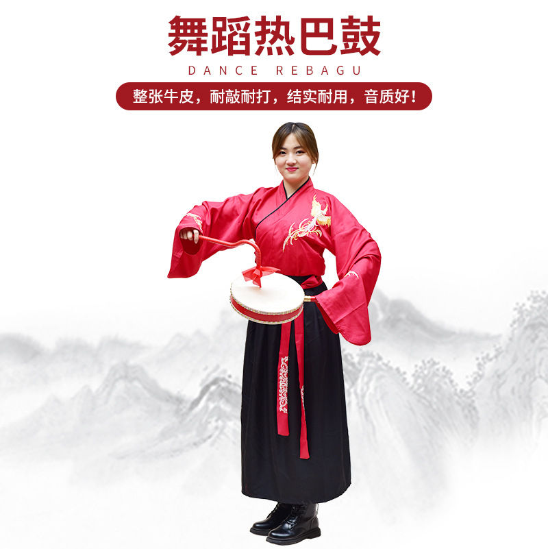 กลองหนังวัวแท้ ด้ามจับแบบ Reba ทาสี สำหรับการเต้นรำแบบทิเบต