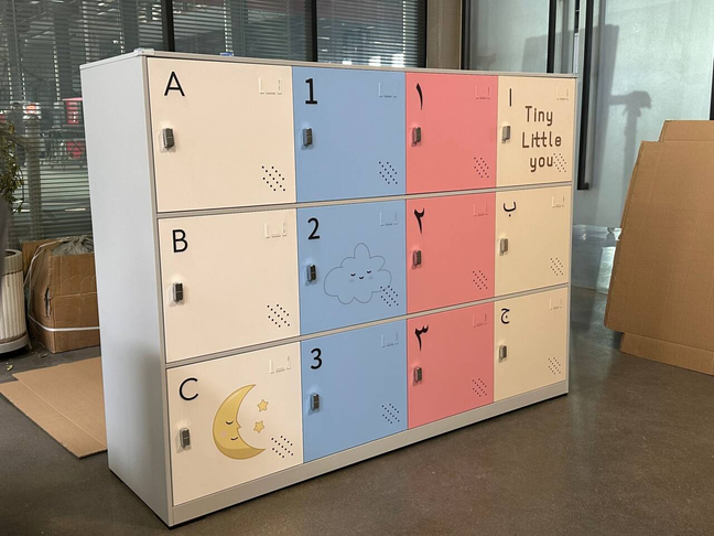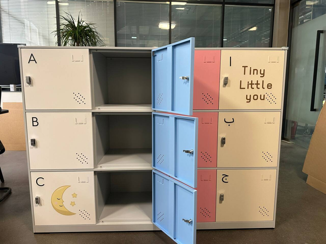 ตู้เก็บของเหล็กแบบกำหนดเองจากโรงงาน 12 ประตู สำหรับใส่กระเป๋านักเรียน ตู้ล็อกเกอร์โลหะสำหรับโรงเรียน ตู้โลหะสำนักงาน ครึ่งสูง สำหรับโฮมออฟฟิศ