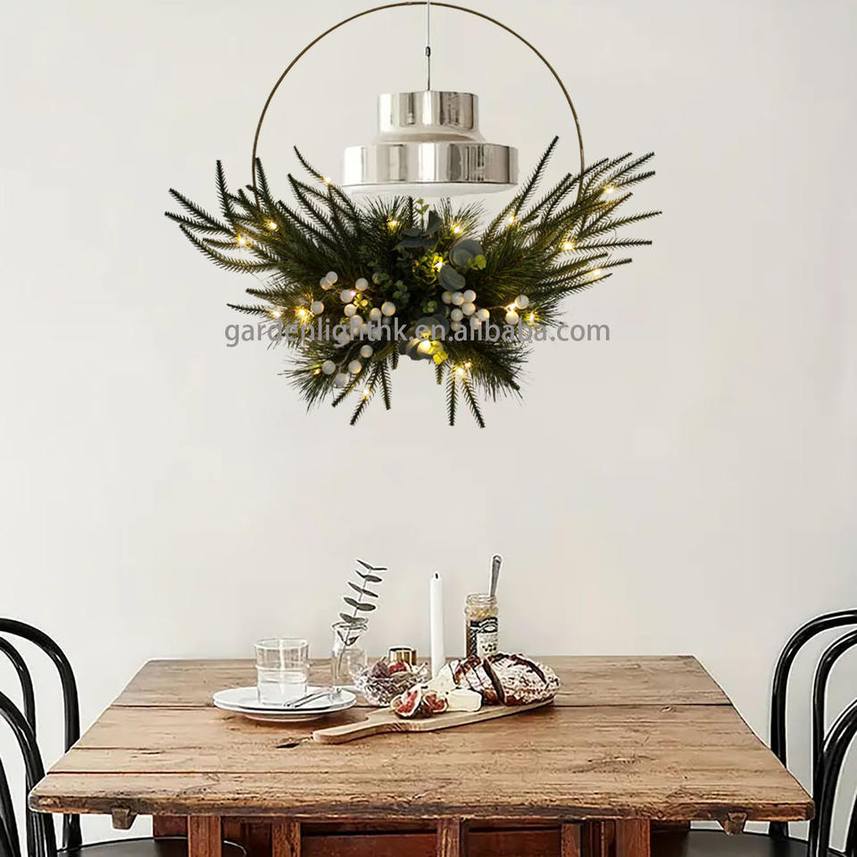 พวงมาลาแขวนประดิษฐ์สีเขียว16in ออกแบบได้เองเป็นมิตรกับสิ่งแวดล้อมตกแต่งคริสต์มาสสำหรับงานปาร์ตี้ในบ้านของโรงแรม