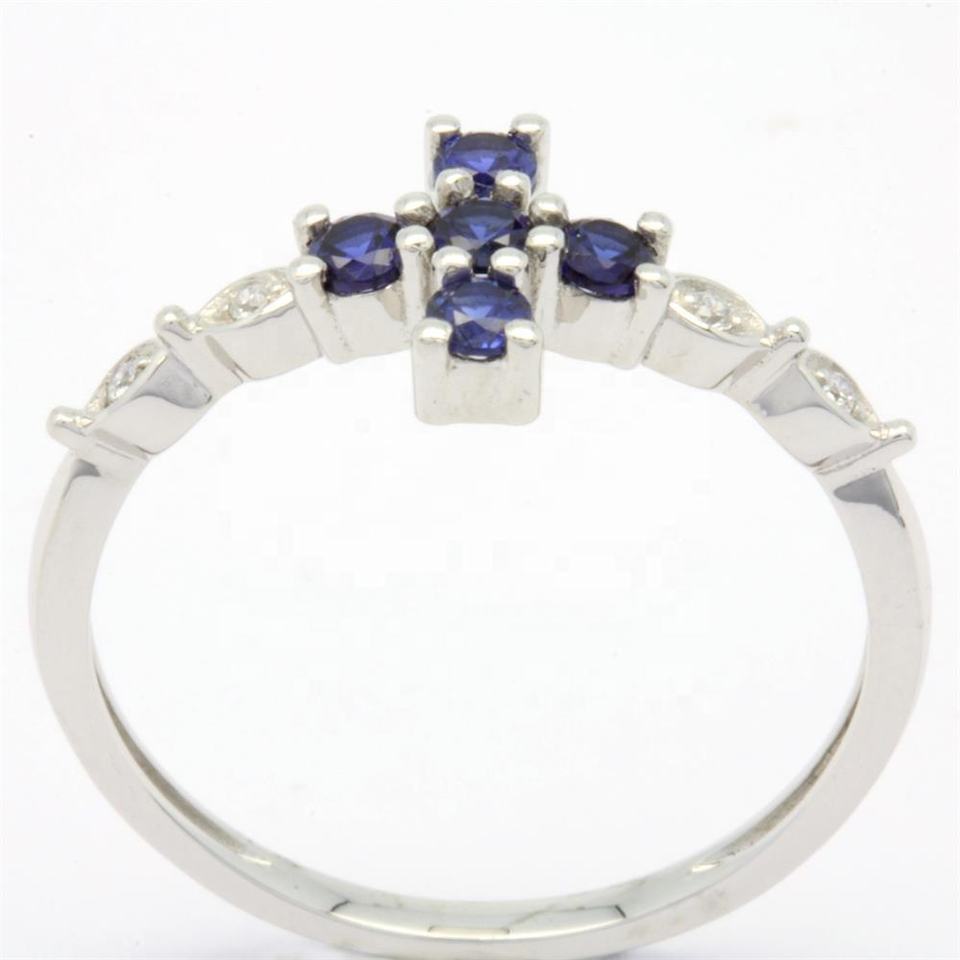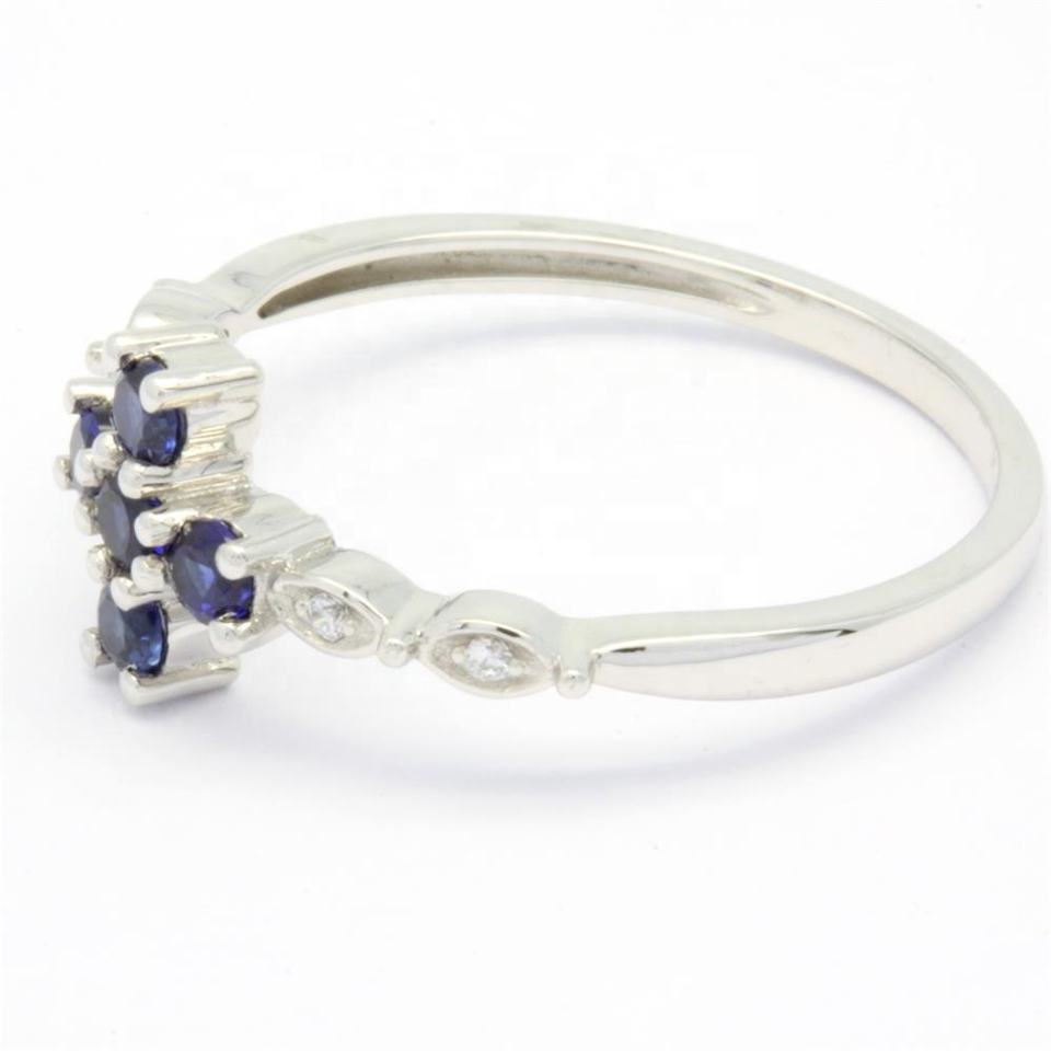 แหวนแซฟไฟร์ประดับเพชรทองคำขาว18K 14K 9K สำหรับผู้หญิงแหวนไพลินทรงกลมตัดสดใสเครื่องประดับวันครบรอบทางศาสนาของชาวคริสต์สำหรับผู้หญิง