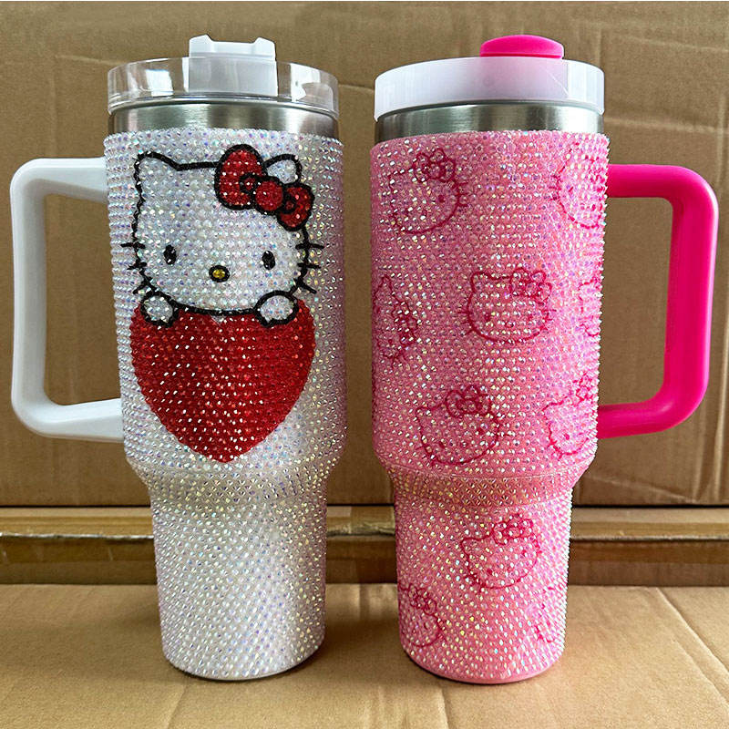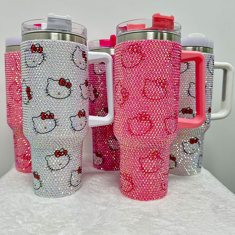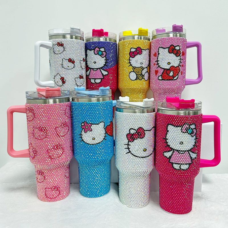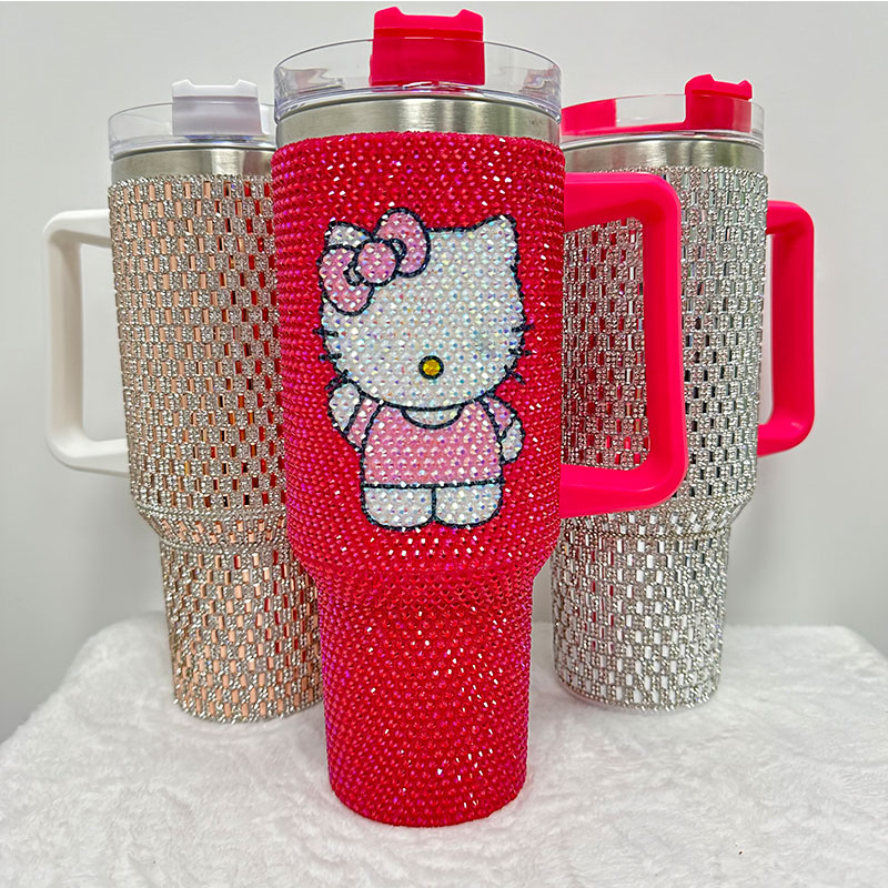 แก้วน้ำแบบมีหูจับ ขนาด 40 ออนซ์ ประดับคริสตัลและเพชรเทียม ลายการ์ตูน สั่งทำได้ตามแบบ ขายส่งจำนวนมาก
