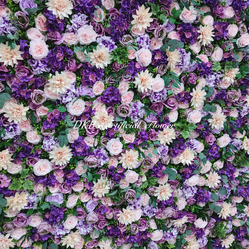 ผนังดอกไม้ประดิษฐ์8x8สำหรับตกแต่งแผงดอกไม้ดอกไม้สีม่วงและชมพูผนังดอกไม้ตามสั่ง