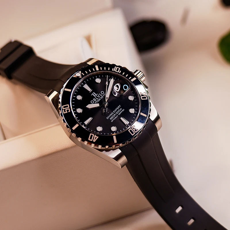 นาฬิกากลไกจักรกลกันน้ำสำหรับผู้ชาย Miyota 8215เคลื่อนไหวญี่ปุ่นนาฬิกาอัตโนมัติเหล็กดำน้ำ