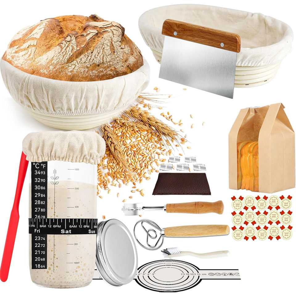 ชุดตะกร้าสำหรับพักแป้งขนมปังแบบกำหนดเองจากโรงงาน ชุดขวดสำหรับทำสourdough starter สำหรับการอบขนมปัง