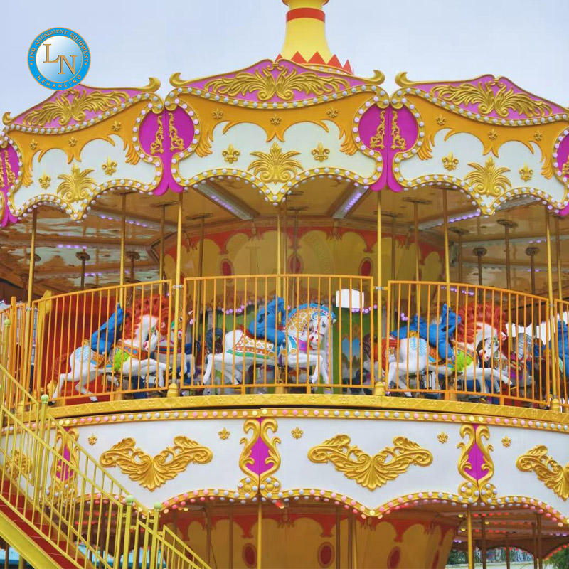 ม้าหมุนพลาสติกอุปกรณ์สนามเด็กเล่นกลางแจ้งสำหรับห้างสรรพสินค้าเมอร์รี่16-Seater แบบสั่งทำได้จากโรงงาน