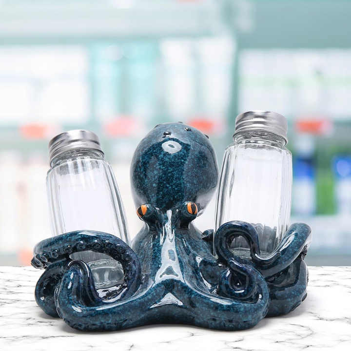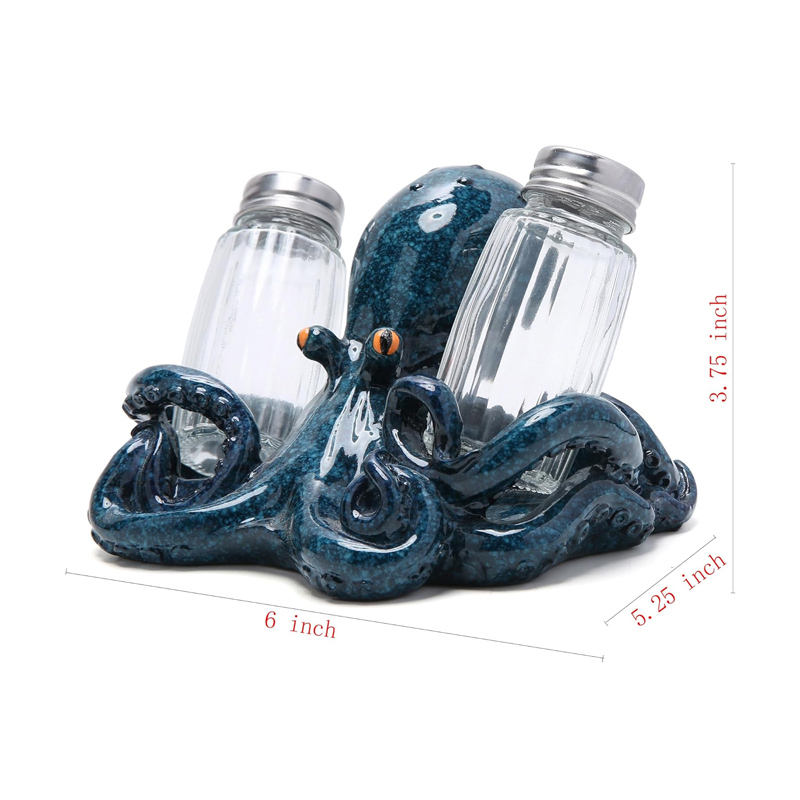 ของตกแต่งรูปปั้นปู ปูทะเล ปลาหมึก พร้อมที่ใส่เครื่องปรุงรส สำหรับตกแต่งบาร์ริมชายหาด ครัวสไตล์ทรอปิคอล ทำจากเรซิ่น
