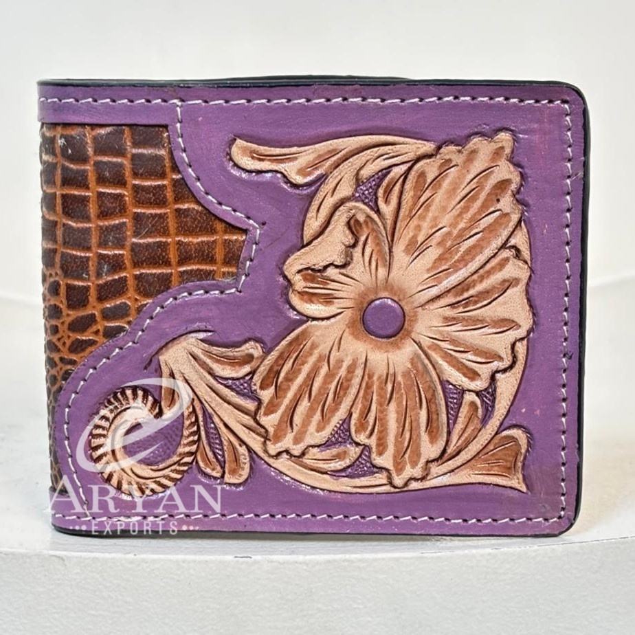 Product Name:Crocodile Pattern Hand Tooled Leather Men's Bifold Wallet