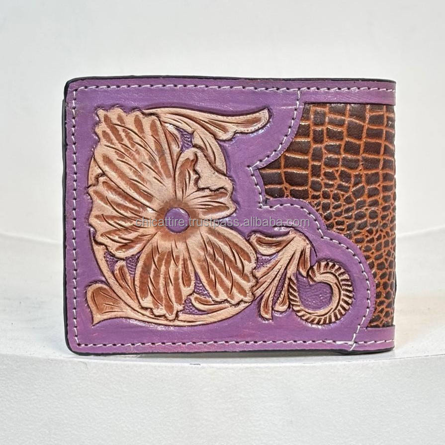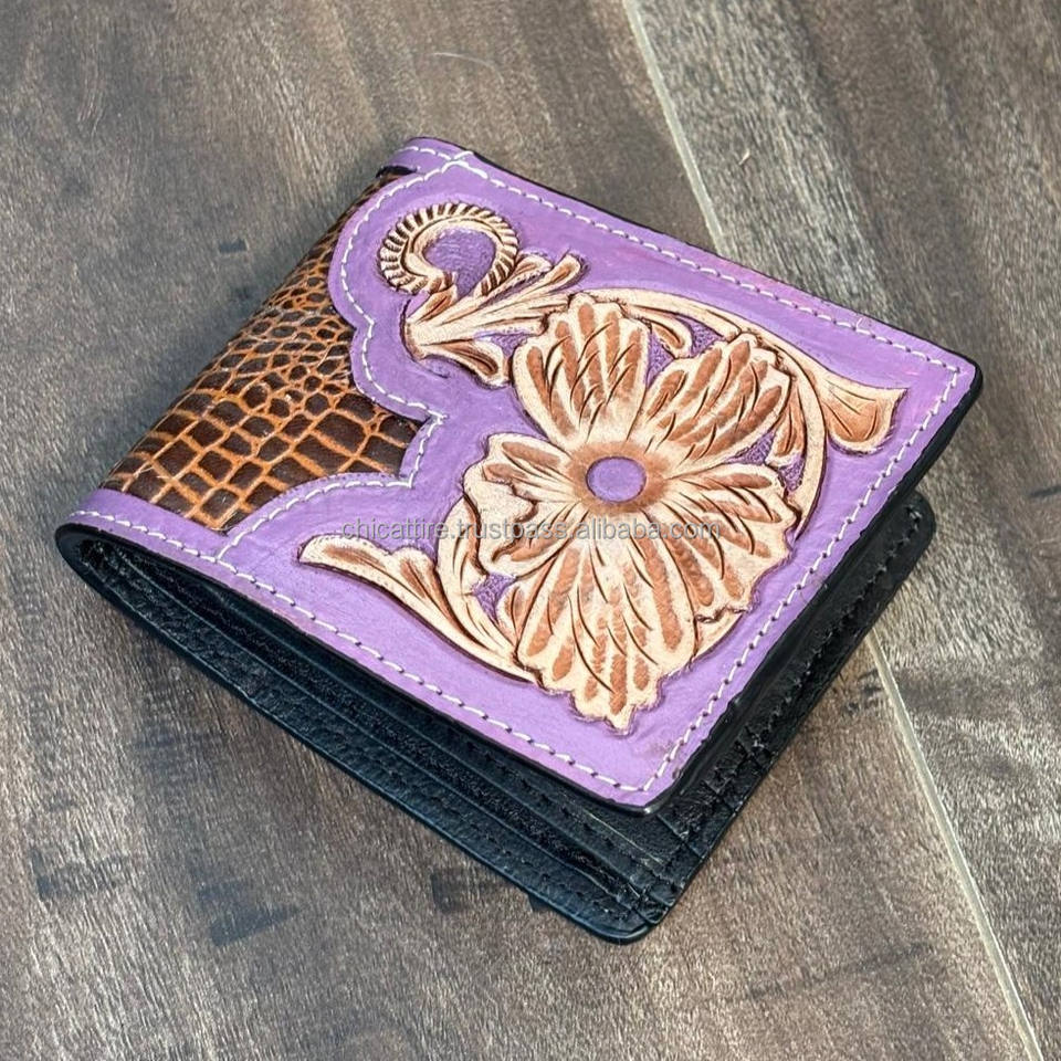 Product name:Crocodile Pattern Hand Tooled Leather Men's Bifold Wallet