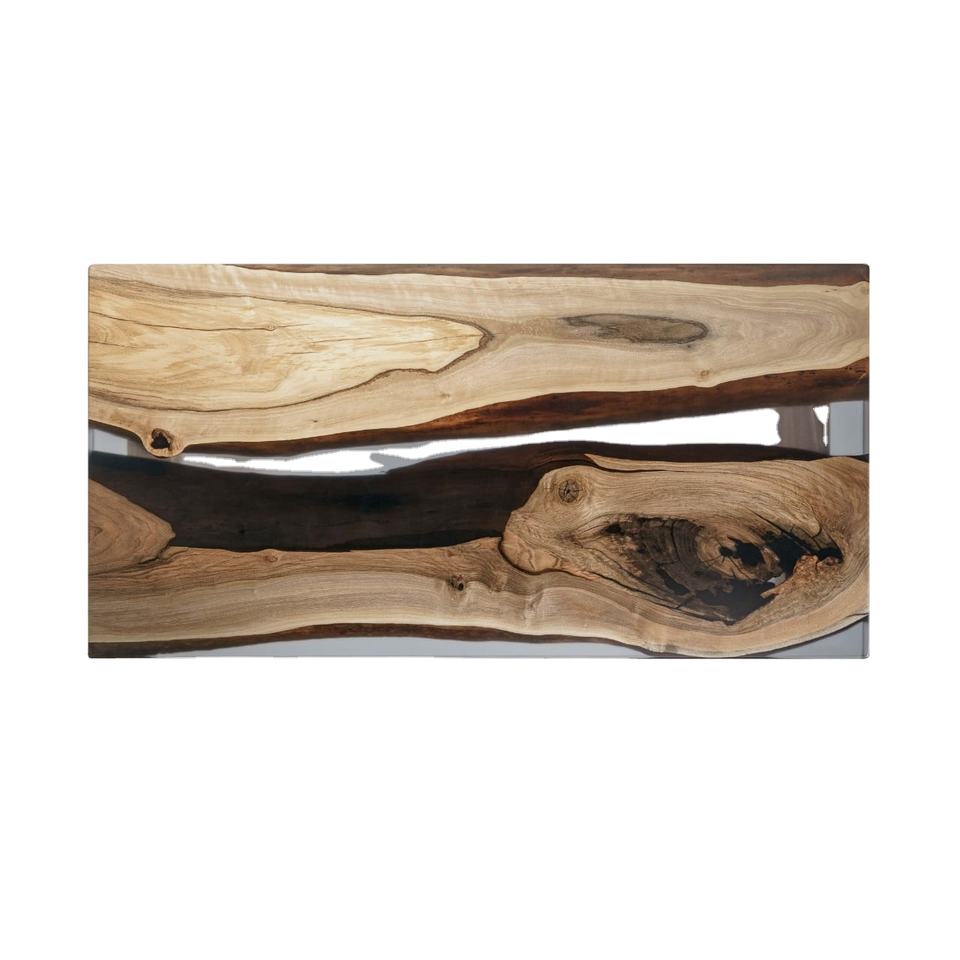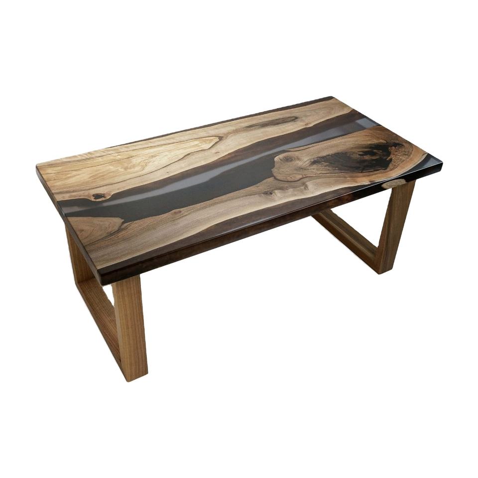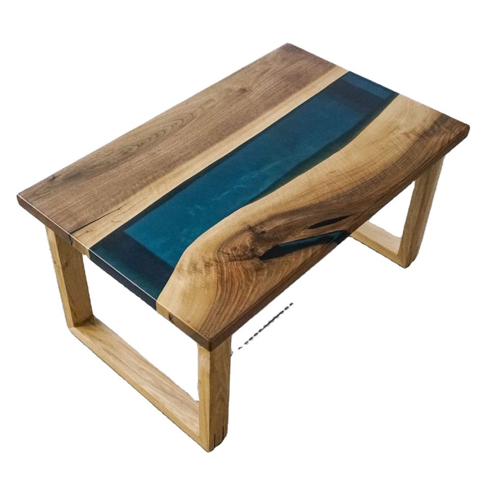 โต๊ะรับประทานอาหารทำจากเรซิ่นและไม้ที่ออกแบบได้อย่างงดงามขาโลหะและพื้นผิวมันวาวเรียบเนียนสำหรับใช้ตกแต่งบ้านคาเฟ่และสำนักงาน