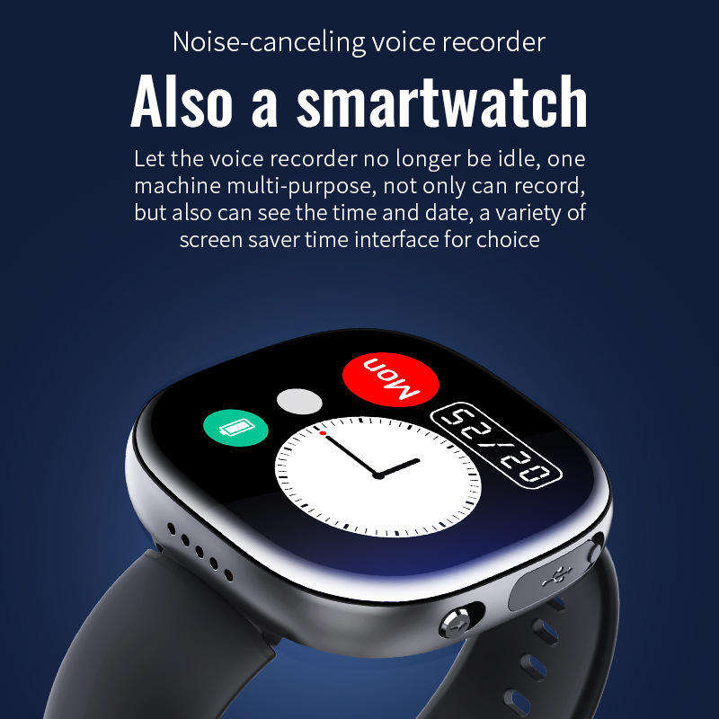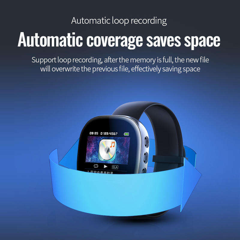 กำไลข้อมือบันทึกเสียงแบบตัดเสียงรบกวน HD แบบกำหนดเองจากโรงงาน บันทึกได้นาน 20 ชั่วโมง อุปกรณ์บันทึกเสียงเข้ารหัสเพียงคลิกเดียว สำหรับการประชุมและเรียน