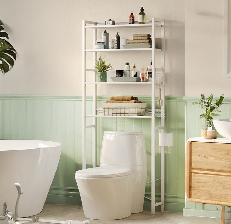ชั้นวางของทนทานสำหรับวางในห้องน้ำที่เก็บของทำจากไม้ + โลหะสี่ชั้นแบบทันสมัย