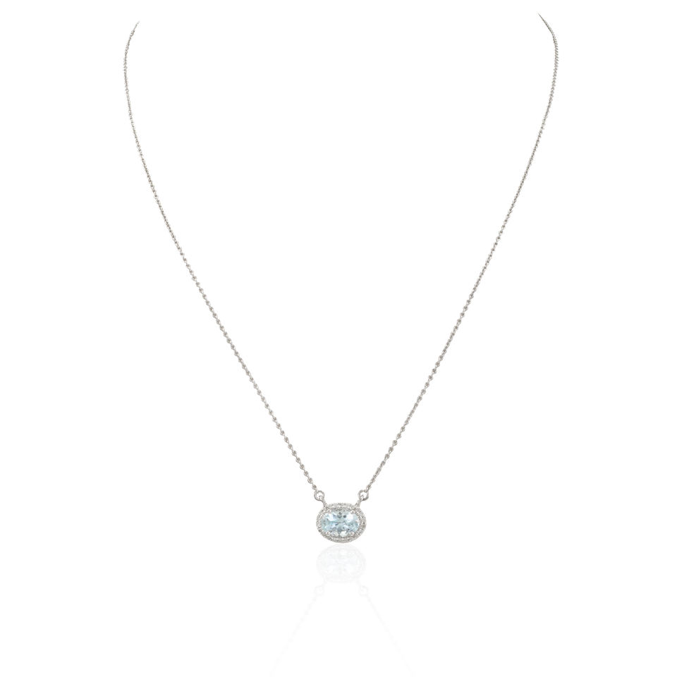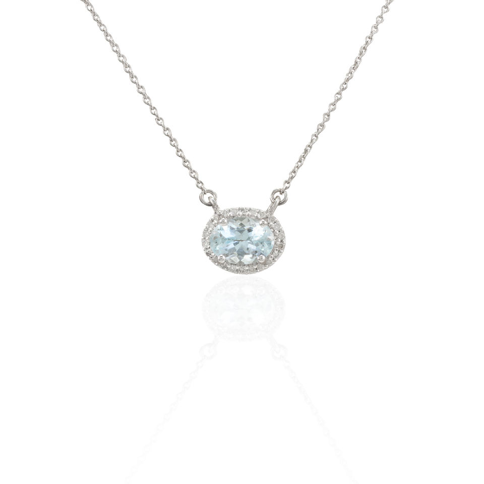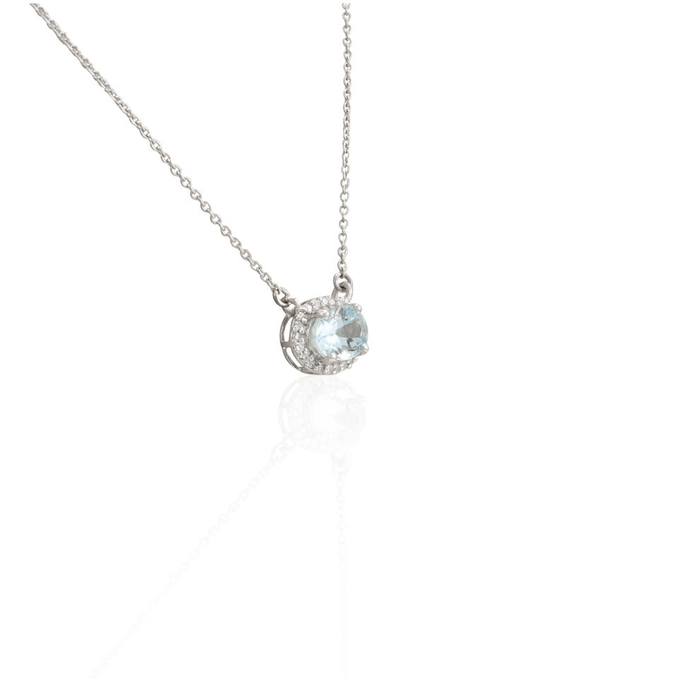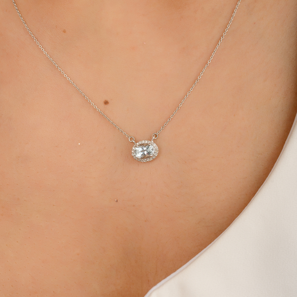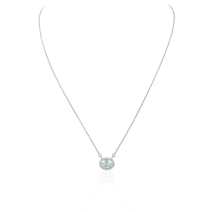โรงงานที่กําหนดเองคุณภาพสูงธรรมชาติรูปไข่ Aquamarine เพชร K14 ทองคําขาวทึบสร้อยคอจี้ Minimalist เครื่องประดับ Fine