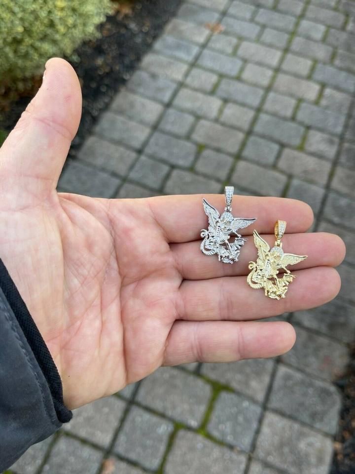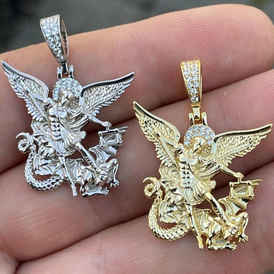 จี้พระอัครเทวดามิคาเอลแบบฮิปฮอปสั่งทำจากโรงงาน ประดับเพชรทองเหลือง สำหรับสร้อยคอ ชุบทองคำขาว 14k หรือโรเดียม เครื่องประดับผู้ชาย