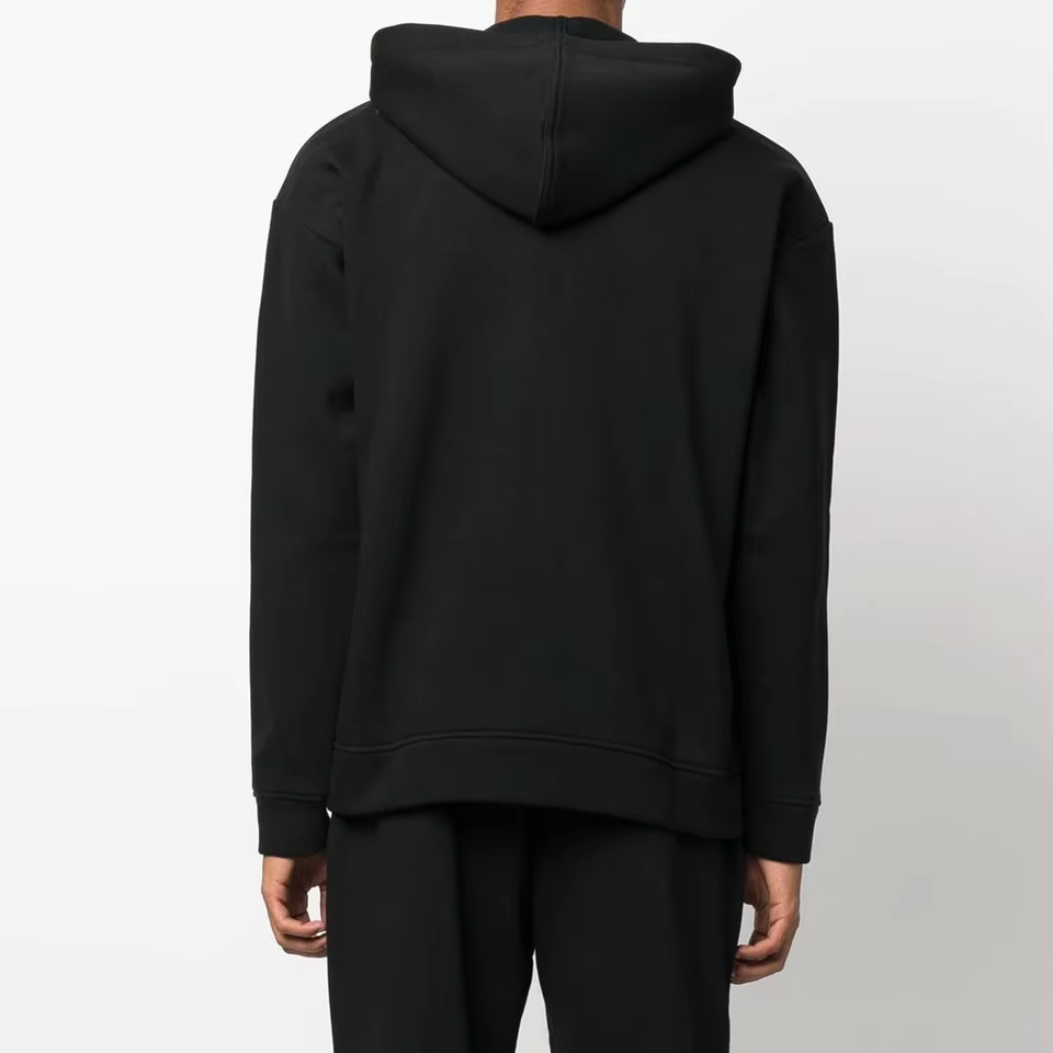 เสื้อฮู้ดดี้ผู้ชายสั่งทำจากโรงงาน ปักลายแบบดิสเทรส ผ้าคอตตอนหนา 450 กรัม ทรงโอเวอร์ไซส์ แบบครอป ซิปพิมพ์ลาย ผ้าฟลีซ สำหรับฤดูหนาว ไซส์ XS แบบพัฟ