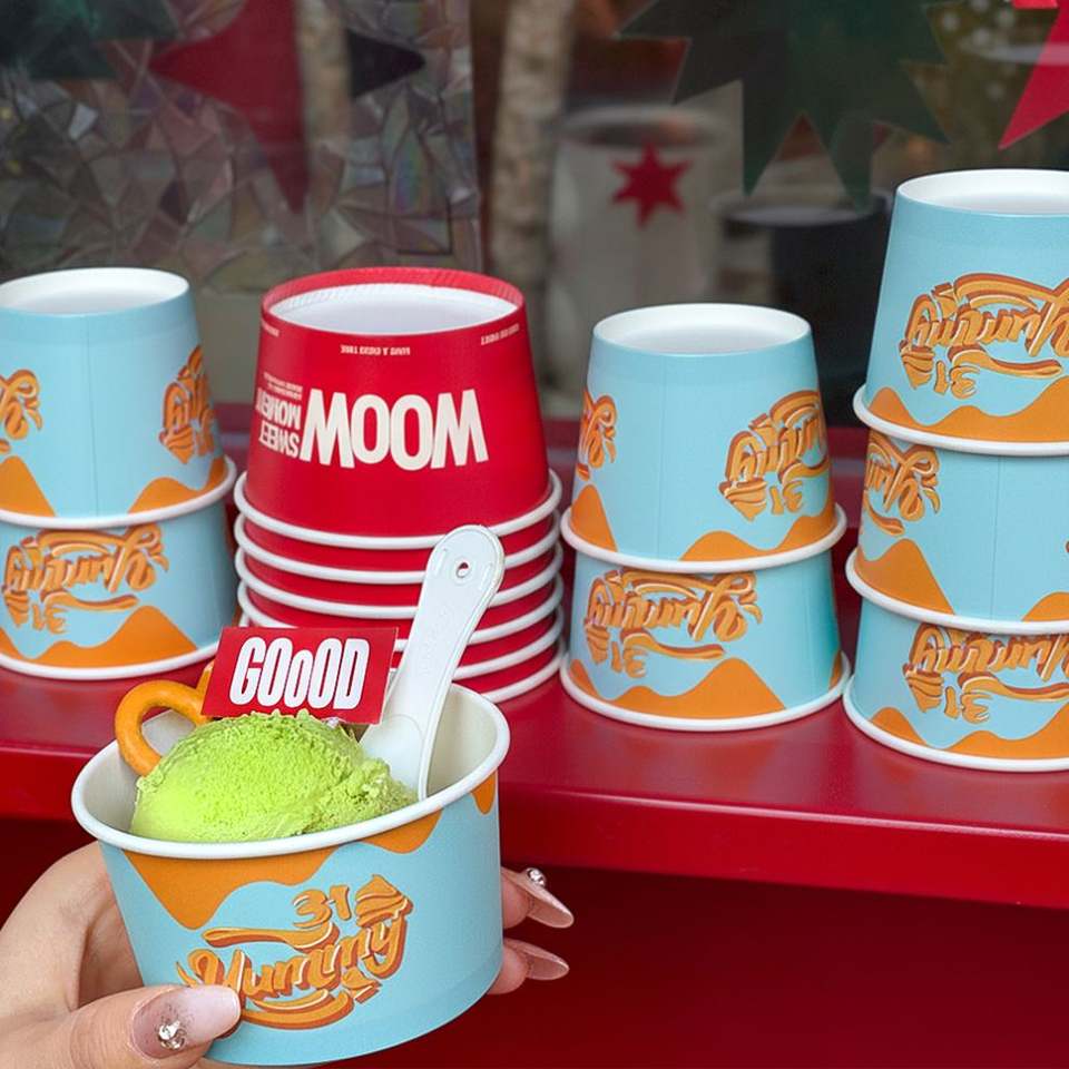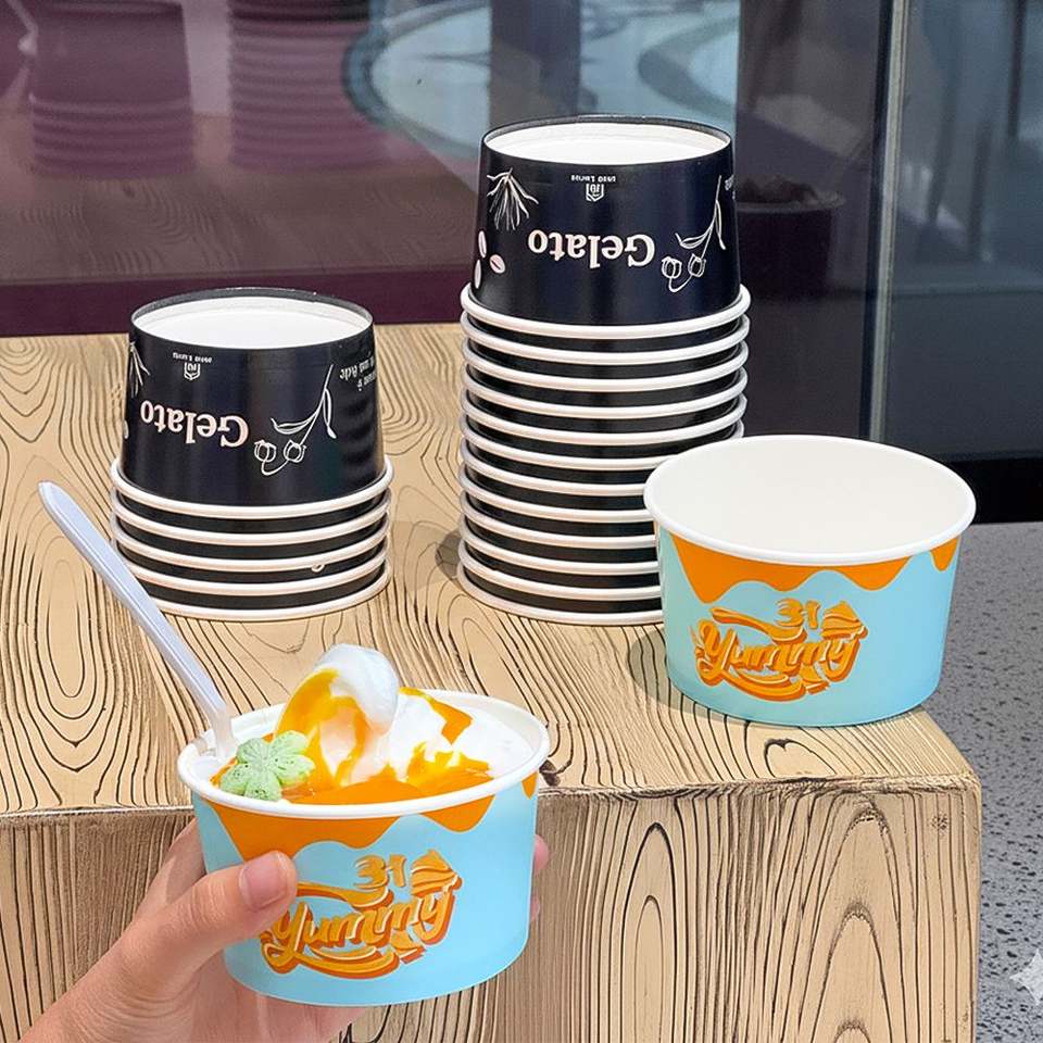 ถ้วยไอศกรีมกระดาษและโคนไอศกรีมแบบกำหนดเองจากโรงงาน ผลิตจากวัสดุเกรดอาหาร ย่อยสลายได้ทางชีวภาพ สำหรับร้านไอศกรีมและของหวาน