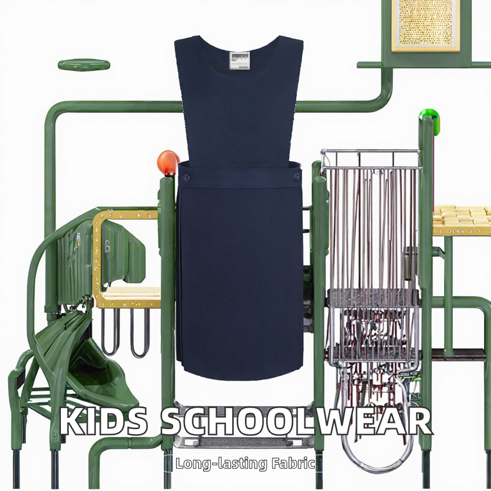ชุดนักเรียนเด็กแบบสั่งทำจากโรงงาน เสื้อกล้ามคอกลมเรียบสำหรับเด็กผู้หญิง ชุดเดรสจีบแบบพินาโฟร์สำหรับนักเรียน