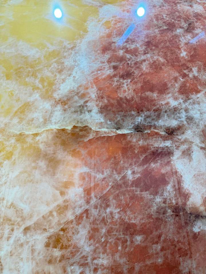 แผ่นกระเบื้องพอร์ซเลนลายหินอ่อน Pandora แบบโปร่งแสง ขนาดใหญ่พิเศษ 3200x1800 มม. ผลิตตามสั่งจากโรงงาน พร้อมแท่นโชว์แบบเลื่อน