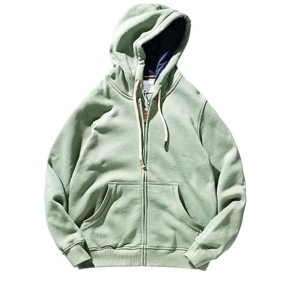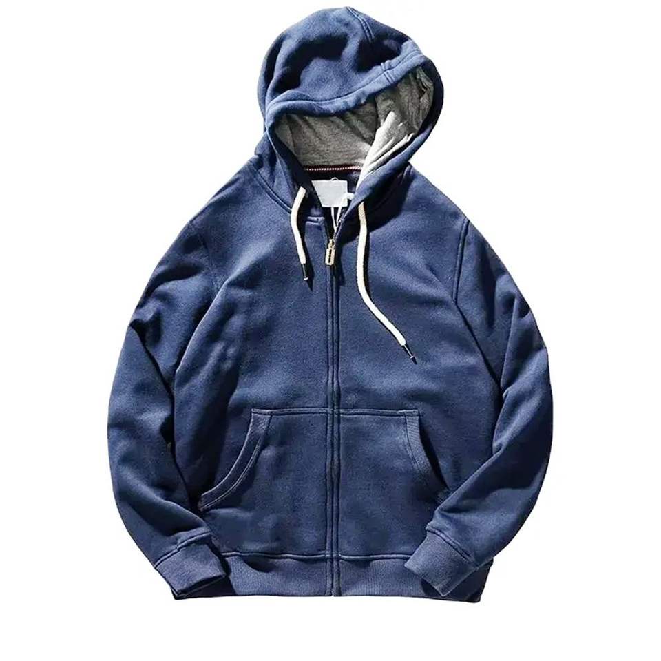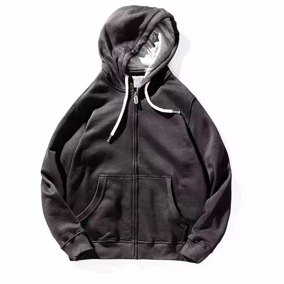 เสื้อฮู้ดดี้ซิปแบบวินเทจฟอกสีสไตล์สตรีทแวร์ ผ้าฝ้ายเฟรนช์เทอร์รี่ ทำสีซีดแบบซันเฟด รับสกรีนโลโก้ตามแบบ