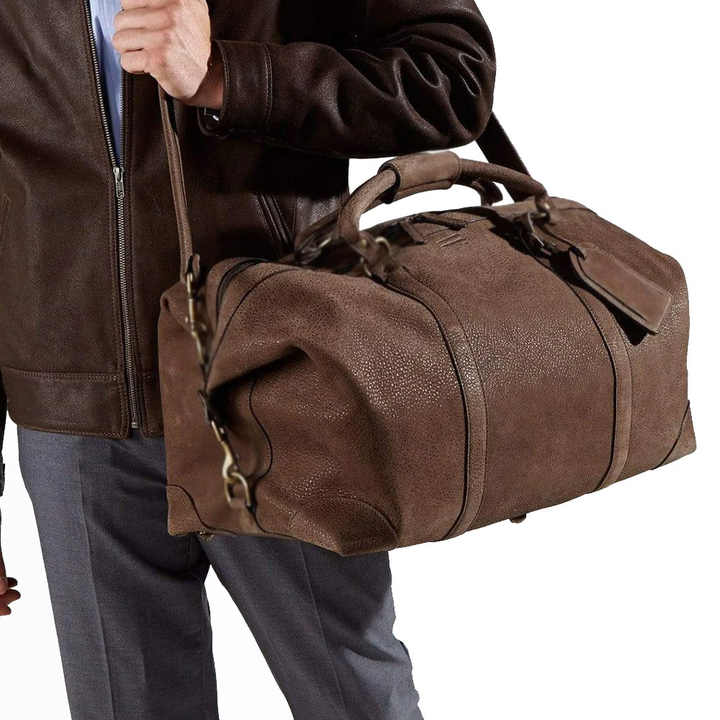 กระเป๋าเดินทางหนังแท้สไตล์วินเทจแบบ unisex พร้อมโลโก้สั่งทำ ลายเข็มขัดวินเทจ ซิปทนทาน หูหิ้วนุ่ม ความจุ 20-35 ลิตร สำหรับใช้ในชีวิตประจำวัน