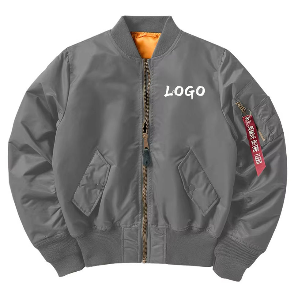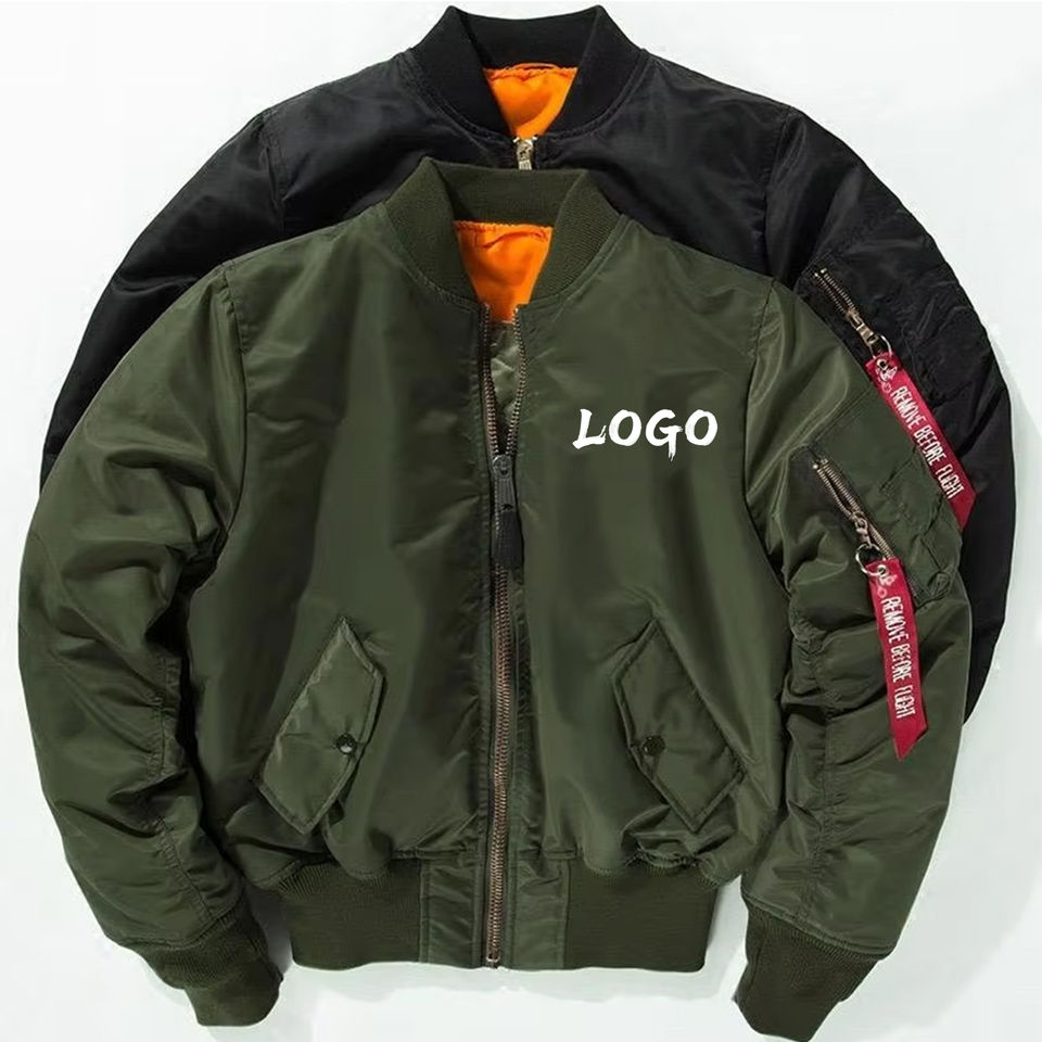 แจ็คเก็ตนักบิน MA-1 แบบสปริง/ออทั่ม สกรีนโลโก้ตามสั่ง ผลิตจากโรงงาน กันลม กันน้ำ เหมาะสำหรับกิจกรรมกลางแจ้ง แจ็คเก็ตบอมเบอร์สำหรับผู้ชาย