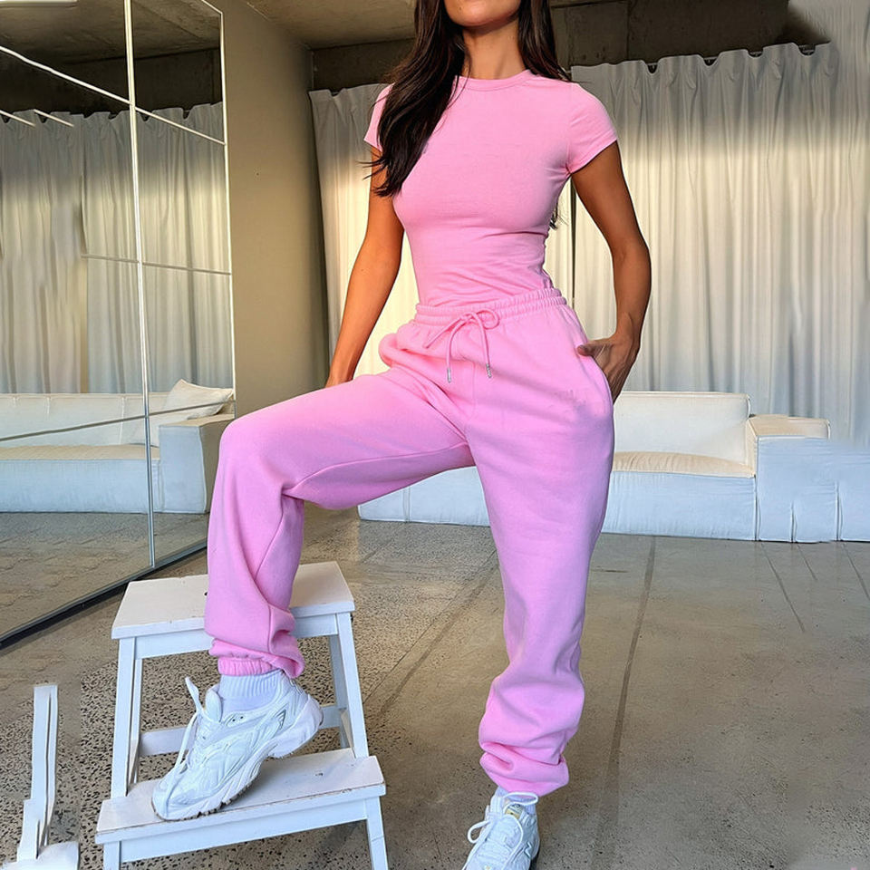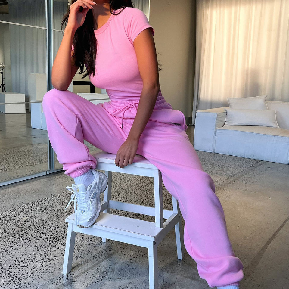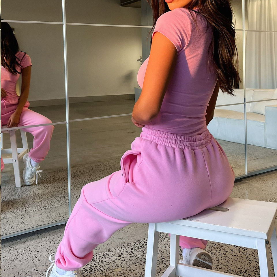 ชุดเซ็ท 2 ชิ้น เสื้อครอปแขนยาวและกางเกงขายาวสำหรับผู้หญิง ออกกำลังกาย วิ่งจ๊อกกิ้ง ใส่ได้ในฤดูหนาว รับสกรีนโลโก้ตามแบบ