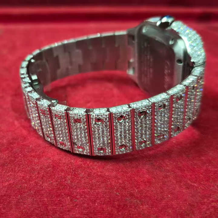 นาฬิกาธุรกิจโบราณสุดหรูสั่งทำจากโรงงาน คุณภาพสูง ประดับเพชร VVS Moissanite สายหนัง สแตนเลส แซฟไฟร์ ควอตซ์