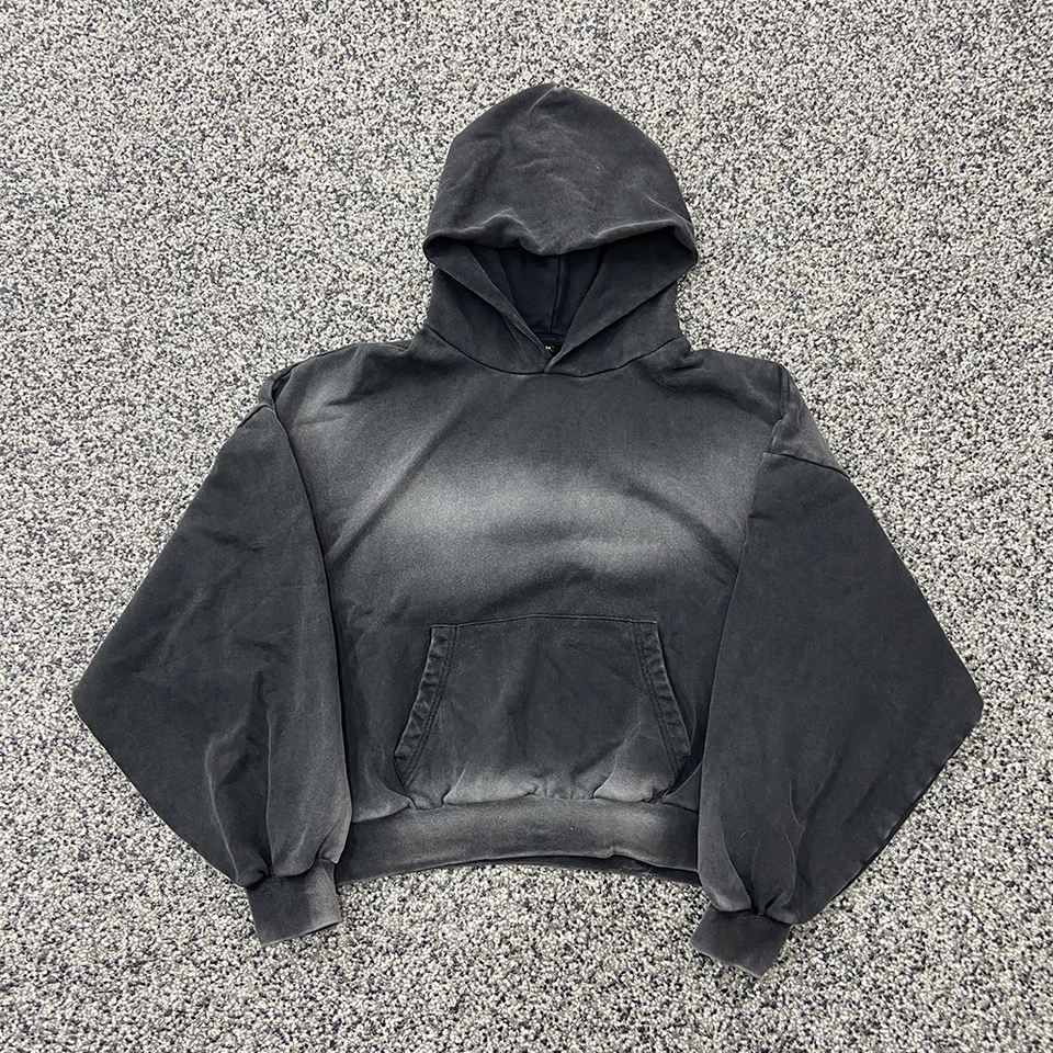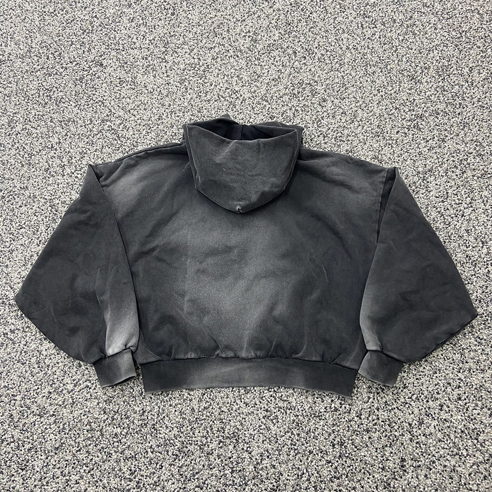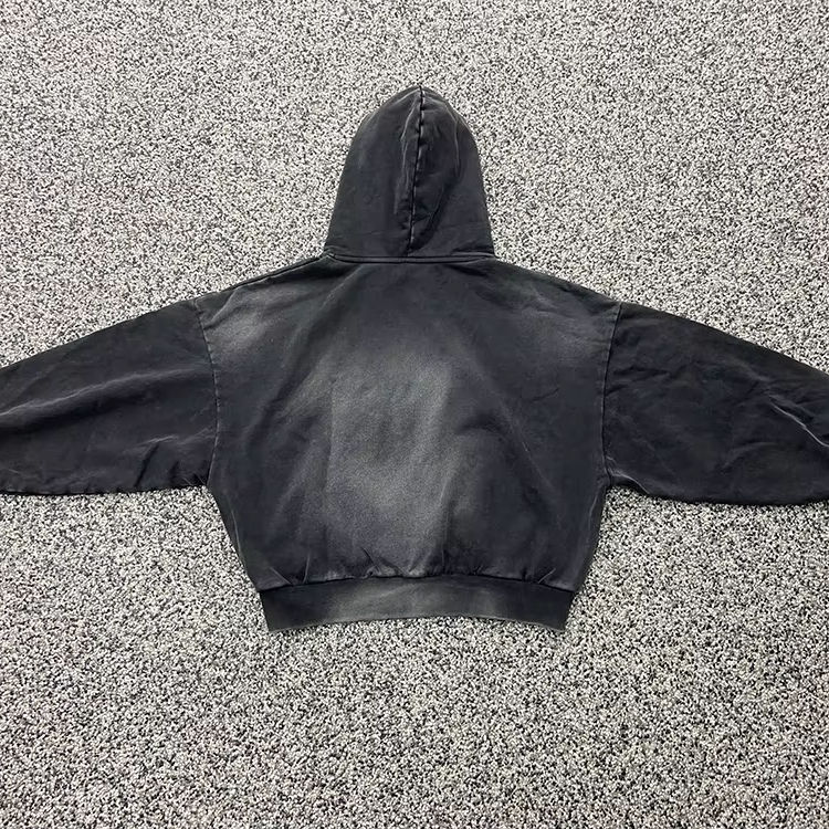 เสื้อฮู้ดดี้ผู้ชายผ้าฝ้ายเฟรนช์เทอร์รี่เนื้อหนา 100% ปักลายดิจิตอล ลายกรด 3 มิติ ประดับเพชร แบบสั่งทำจากโรงงาน