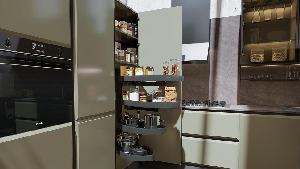 อุปกรณ์:Backsplash, ตะกร้าลิ้นชัก, ลิ้นชักสไลด์, ก๊อกน้ำ, มือจับและลูกบิด, หลักการ, ซูซานขี้เกียจเก็บ, กล่องข้าว, อ่าง, นิ้วเท้าเตะ, คอนเทนเนอร์เสีย
