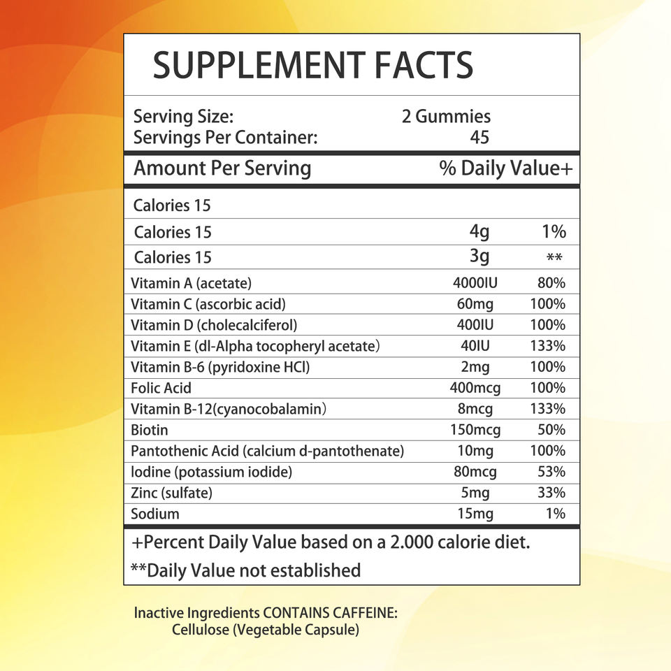 วิตามินรวม, กรดโฟลิก, ไบโอติน, กรดแพนโทธีนิก, ไอโอดีน, สังกะสี, โซเดียมส่วนผสมหลัก