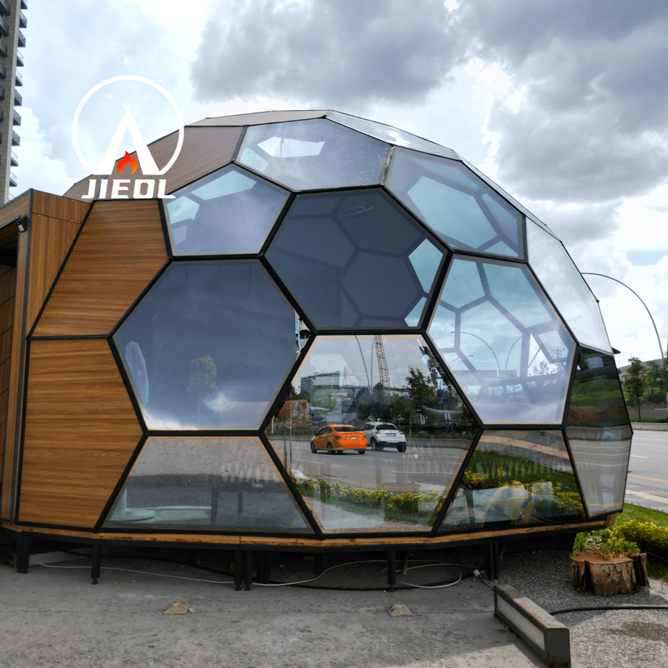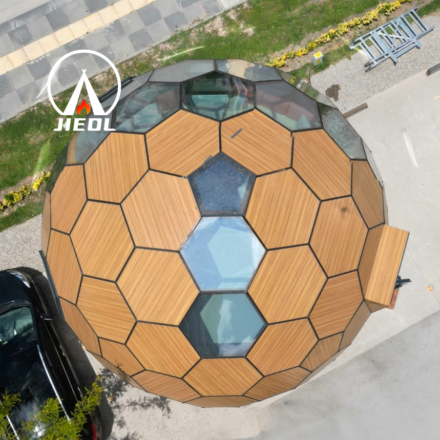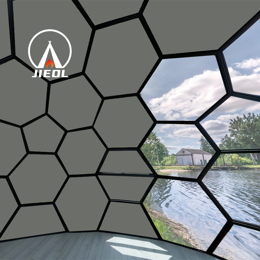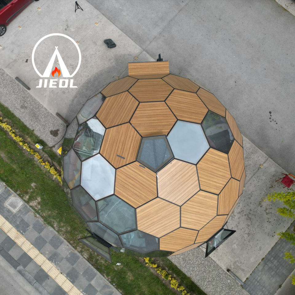 เต็นท์บ้านโดมแก้วรังผึ้งทำจากไม้แบบกำหนดเองได้เองสำหรับตั้งแคมป์ geodesic แก้ว PC