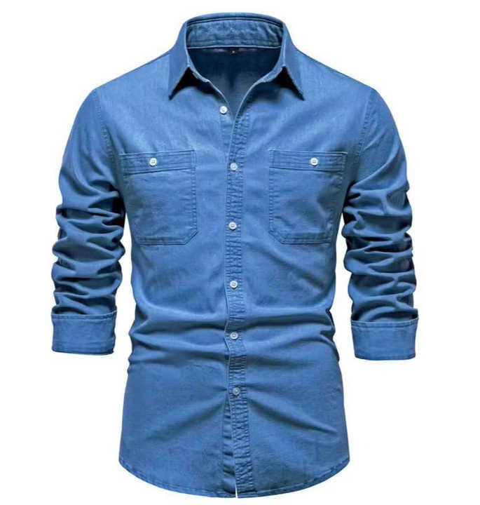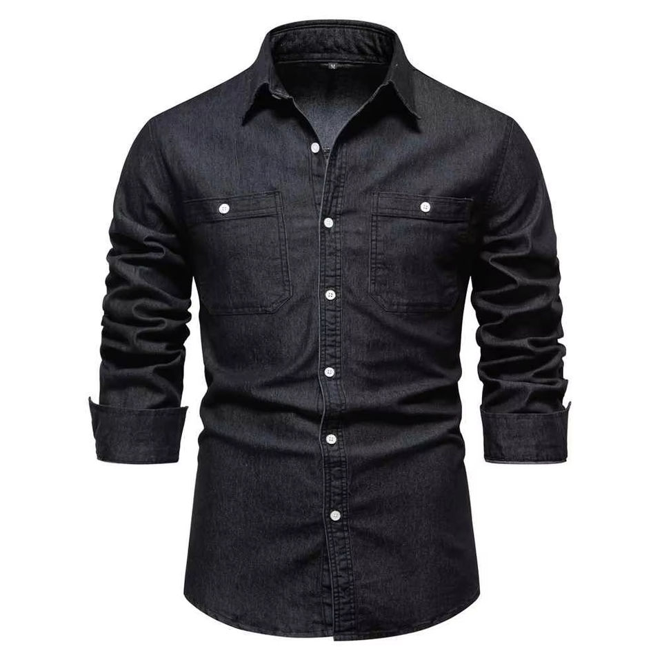 เสื้อเชิ้ตเดนิมแขนยาวสำหรับผู้ชาย สไตล์ลำลอง ติดกระดุม ผลิตตามสั่งจากโรงงาน (OEM)